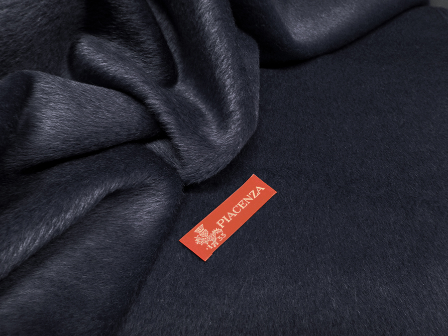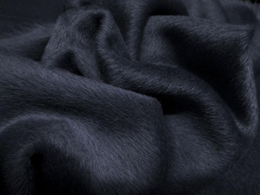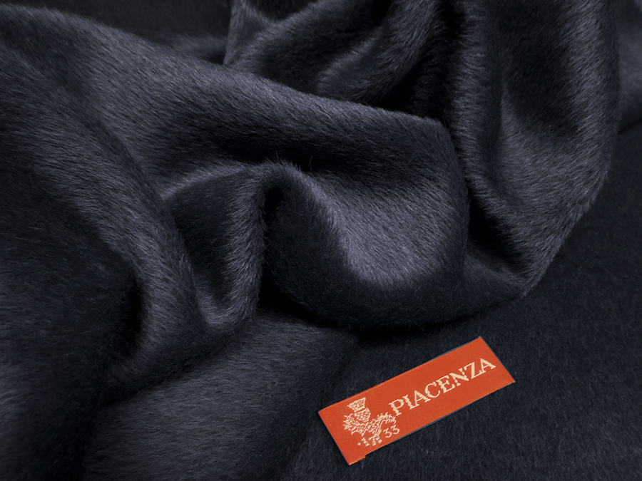 PIACENZA STOCK (NO FIRMATO, NO ETICHETTA) RARO E PREGIATO TESSUTO IN SURI ALPACA: INCREDIBILMENTE MORBIDO, SETOSO, SOFFICE, CALDISSIMO E LUMINOSO. TESSUTO A PELO MEDIO BLU MELANGE NERO.  TESSUTO UNISEX INDICATO PER: CAPPOTTI, GIACCONI, MANTELLE , COPERTE, ECC.