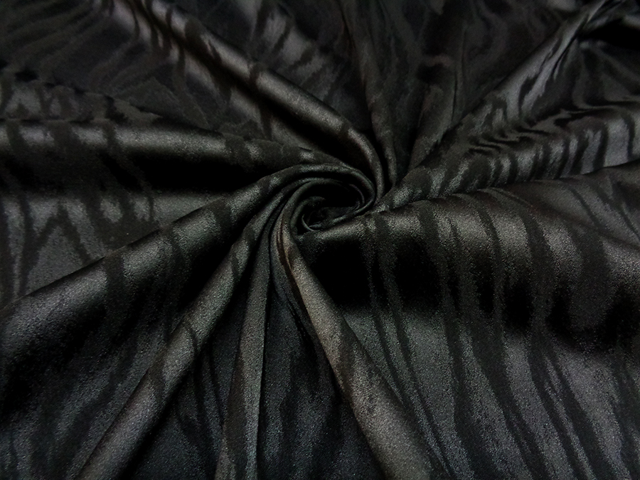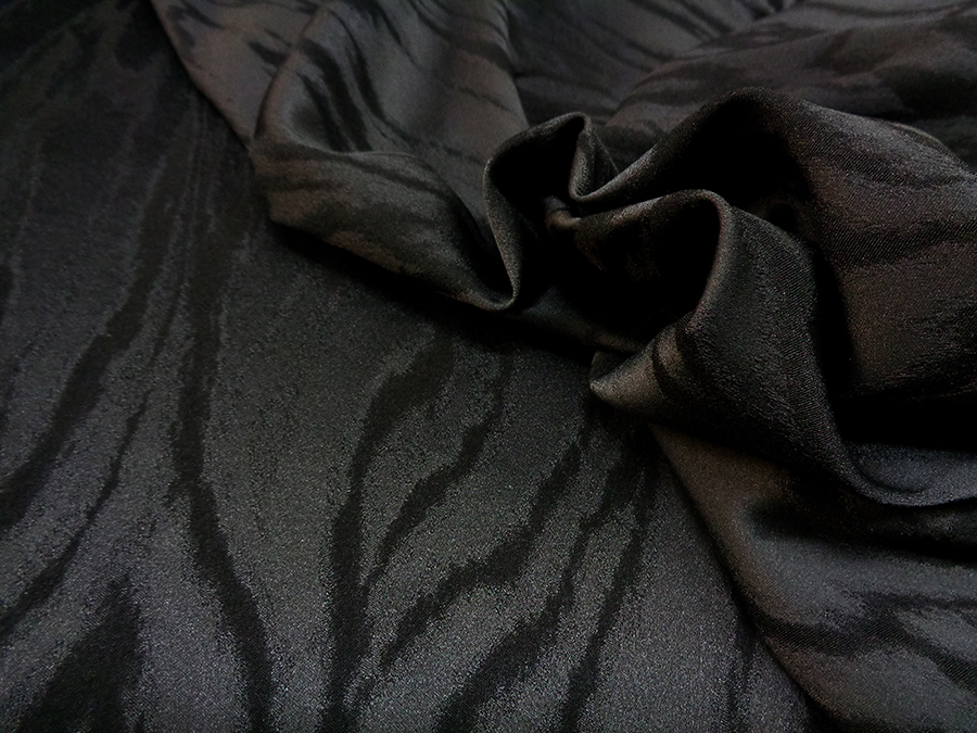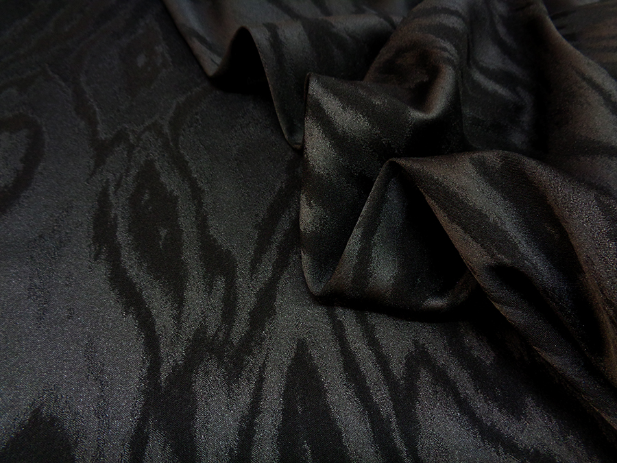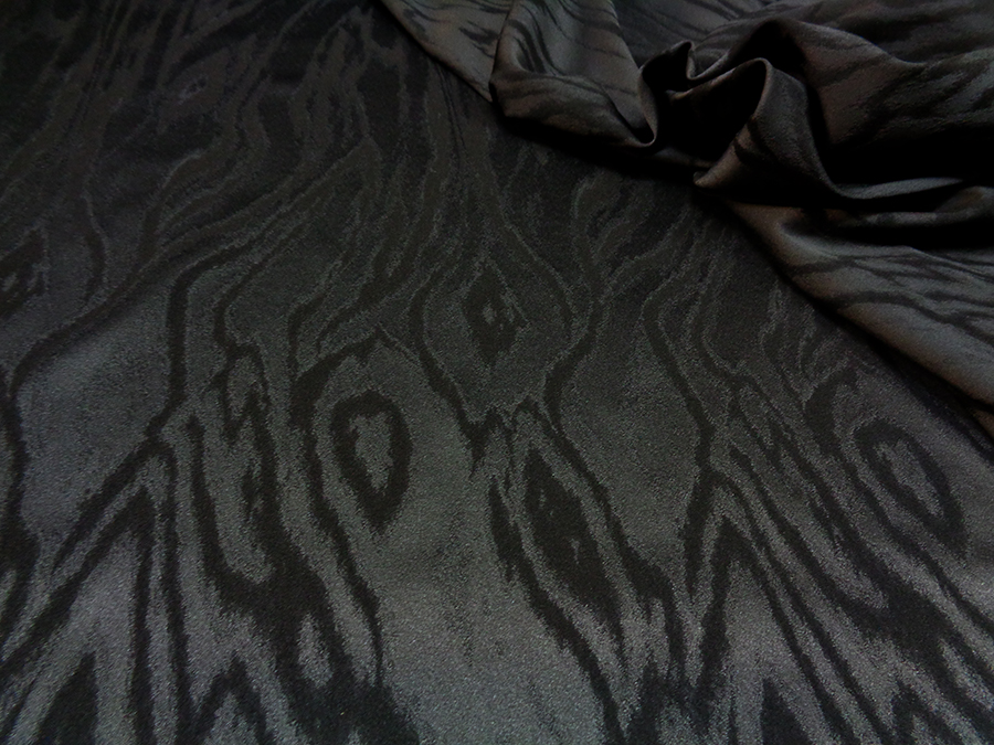PREGIATO ED ESCLUSIVO TESSUTO IN SETA JAQUARD ELASTICIZZATO (IN LARGHEZZA) ALTA MODA, PESO MEDIO, MORBIDO, CONFORTEVOLE ED INDEFORMABILE CON PARTICOLARE LAVORAZIONE JAQUARD TINTA SU TINTA CON EFFETTO MOIRE’ STILIZZATO. TESSUTO UNISEX INDICATO PER: PANTALONI, GIACCHE, ABITI, GILET, GONNE TAILLEUR, ECC..