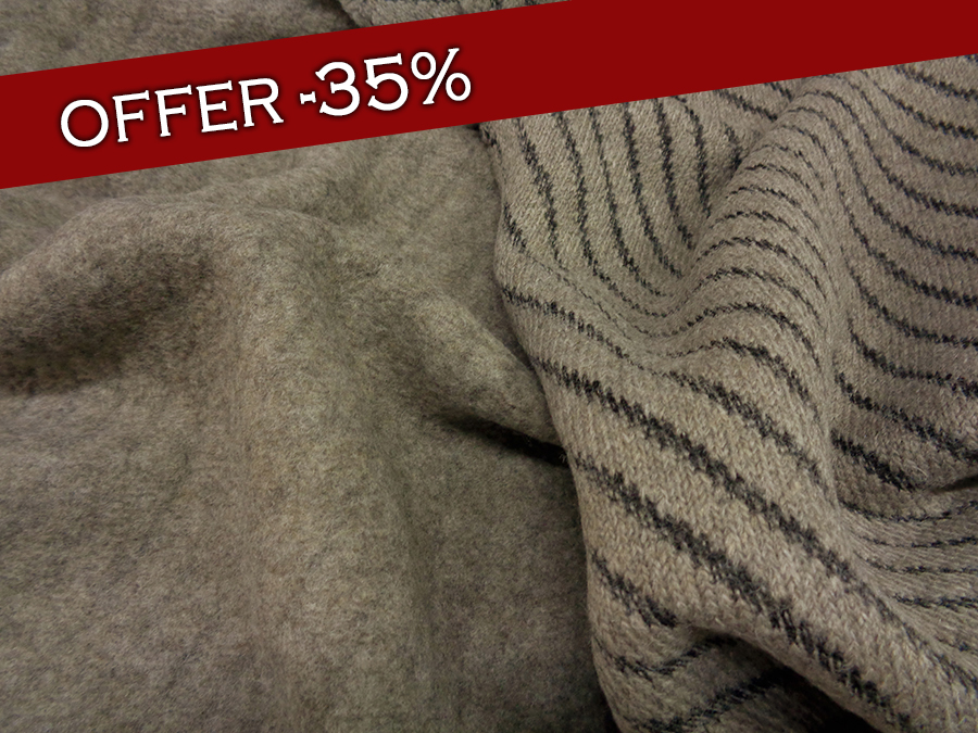 ESCLUSIVO JERSEY PER CAPPOTTO DOUBLEFACE (NON APRIBILE). PESANTE, COMPATTO, MORBIDO E CALDISSIMO0. UN LATO FONDO TORTORA MELANGE CON LAVORAZIONE DIAGONALE NERO, DALL’ALTRO LATO TORTORA MELANGE. LA LAVORAZIONE COMPATTA E PESANTE PERMETTE DI REALIZZARE CAPPOTTI O GIACCONI SFODERATI DA POTER INDOSSARE DA AMBO I LATI. TESSUTO UNISEX INDICATO PER : CAPPOTTI , GIACCONI, MANTELLE, COPERTE, ECC..