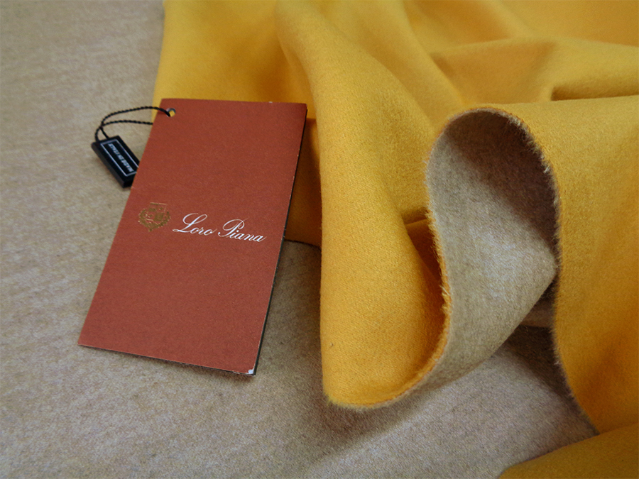 LORO PIANA STOCK (NO FIRMATO, NO CORREDATO DA ETICHETTE) PREGIATISSIMO TESSUTO IN PURO CASHMERE DOUBLEFACE APRIBILE, COMPATTO, MORBIDO, CALDO, SOFFICE, SETOSO E LEGGERMENTE LUMINOSO. COLORE: DA UN LATO BEIGE NATURALE MELANGE OPACO E DALL’ALTRO LATO GIALLO CON FINITURA LUMINOSA. POSSIBILITA’ DI UTILIZZO DA AMBO I LATI. L’ALTISSIMA QUALITA’ DEL FILATO IN PURO CASHMERE DOUBLEFACE CONFERISCE UNA SENSAZIONE DI MORBIDEZZA E CALORE IMPAREGGIABILE. TESSUTO UNISEX AD ESAURIMENTO SCORTE. INDICATO PER: CAPPOTTI, GIACCONI, REVERSIBILI CON PELLICCIA, MANTELLE, COPERTE, ECC..
