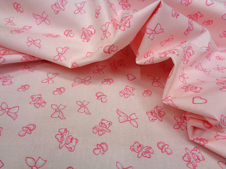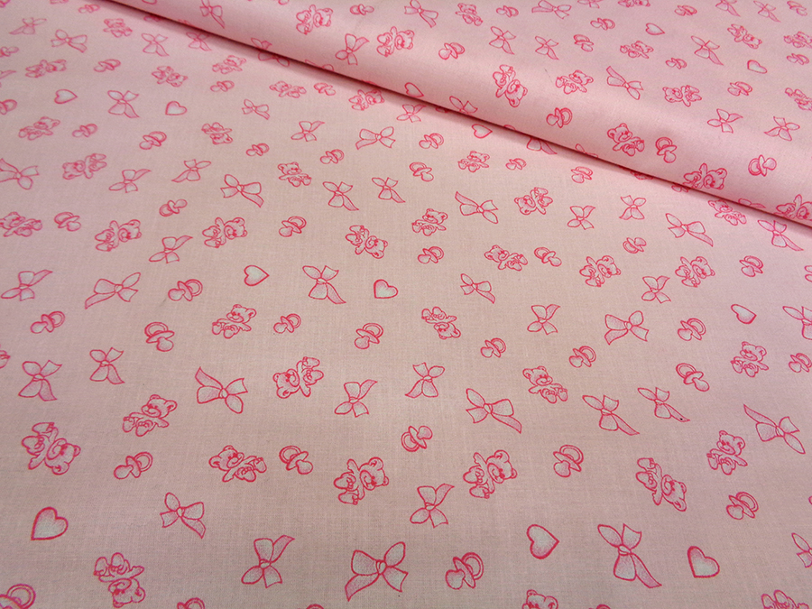 CLASSICA TELA IN PURO COTONE, PESO MEDIO, FONDO ROSA  CON FANTASIA BABY. INDICATO PER: ABBIGLIAMENTO ARREDAMENTO, BRICOLAGE, BIMBI, ECC..