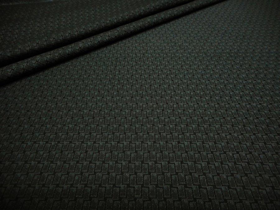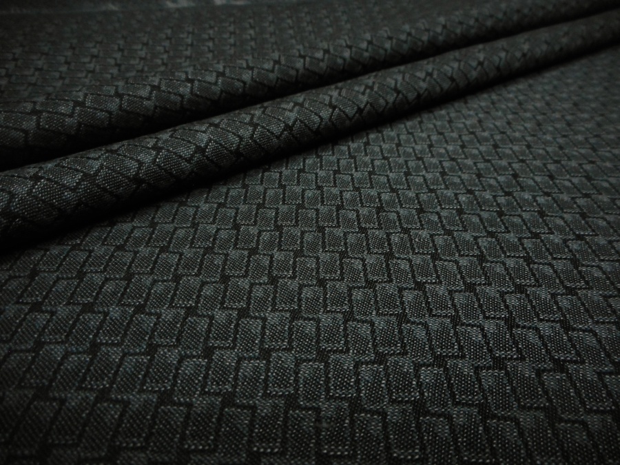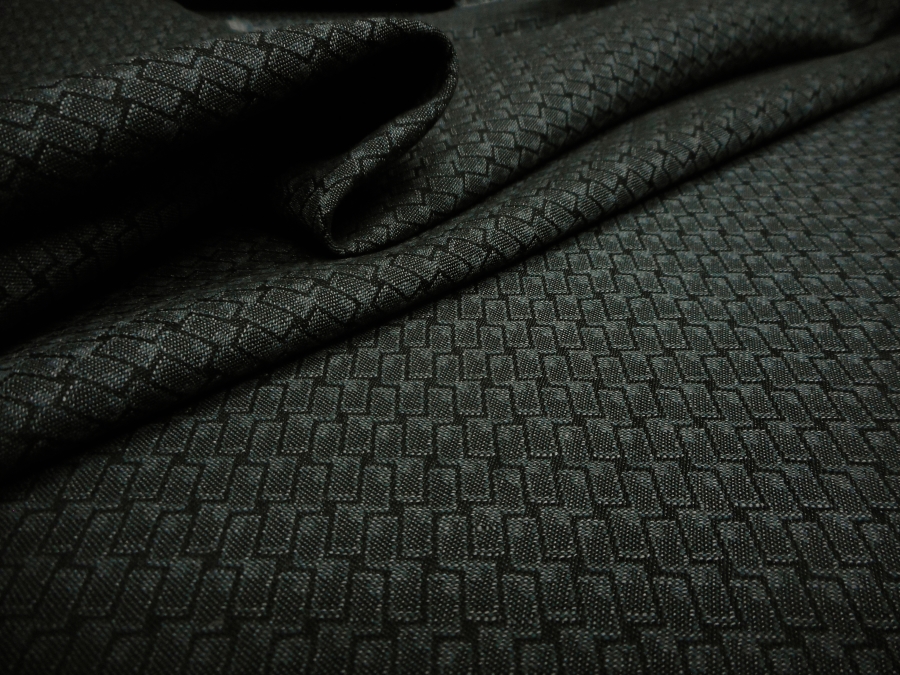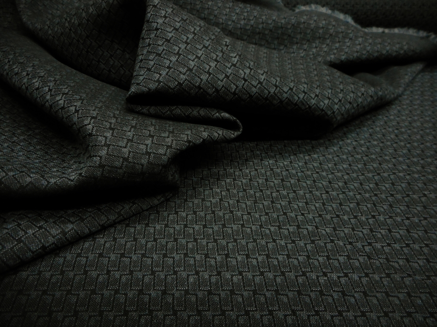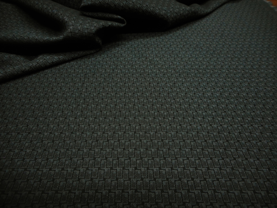 CANCLINI  STOCK (NO FIRMATO, NO CORREDATO DA ETICHETTE) PREGIATO COTONE JAQUARD PESO MEDIO, MORBIDO E CONFORTEVOLE CON PICCOLO DISEGNO GEOMETRICO SUI TONI DEL GRIGIO SCURO. INDICATO PER: PANTALONI, GIACCHE, ABITI, BERMUDA  ECC..