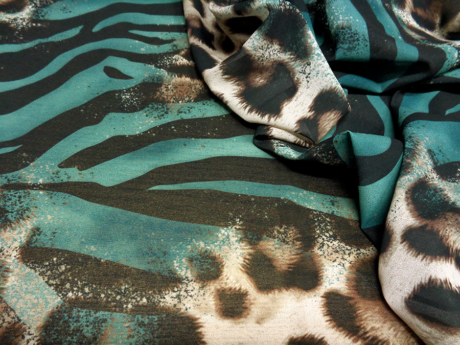 MORBIDO CREPE DE CHINE COPRENTE ED OPACA CON STAMPA ANIMALIER SUI TONI DELL’OTTANIO, NERO E MACULATO IN BEIGE E NERO. INDICATO PER: ABITI, CAFTANI, GONNE, CAMICIE, PANTALONI PALAZZO, ECC..