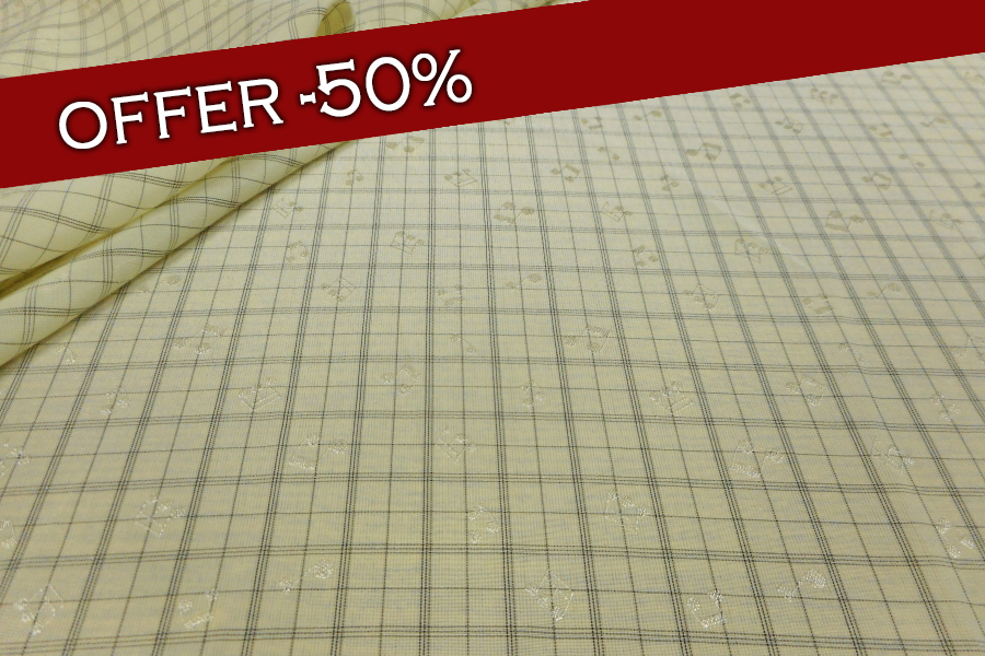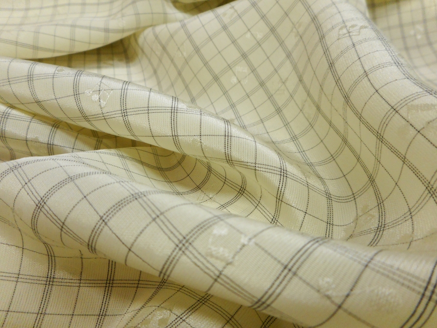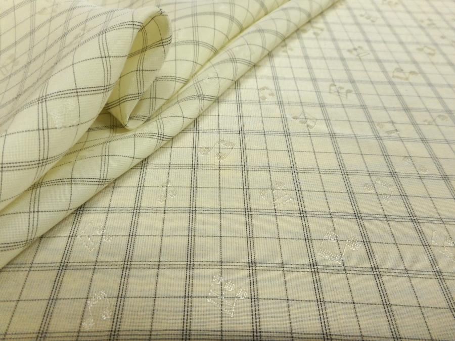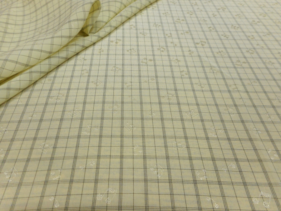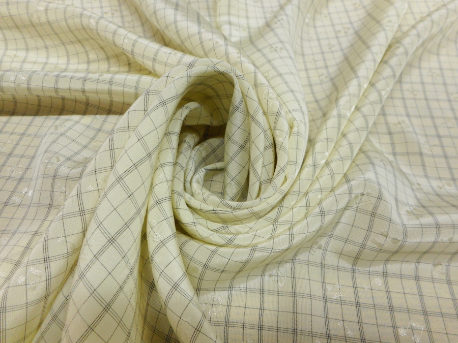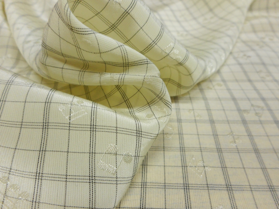 AUTENTICO VINTAGE ANNI 70 .MORBIDA CREPE DE CHINE FONDO AVORIO CON PICCOLI QUADRETTI E NOTE MUSICALI LUCIDE ED OPACHE. . PARTE DOPPIA LEGGERMENTE IMPOLVERATA; SI CONSIGLIA DI LAVARLA O SCARTARLA PRIMA DI CONFEZIONARLA. :INDICATO PER: BLUSE, ABITI, GONNE, CAMICETTE, ECC, ECC..