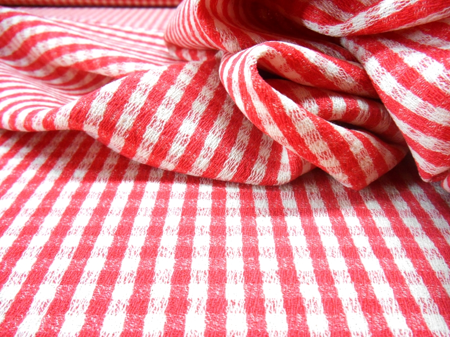 AUTHENTIC VINTAGE 70’S. SOFT CREPE IN PURE WOOL WITH A HALF CENTIMETER SQUARE IN WHITE AND RED. SUITABLE FOR: DRESS, JACKET, TROUSERS..
