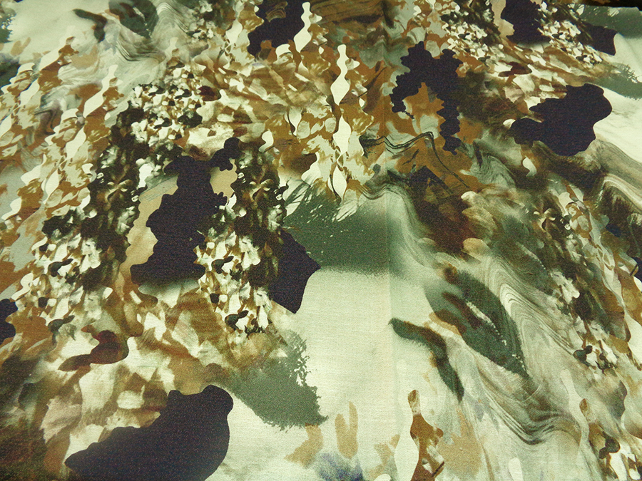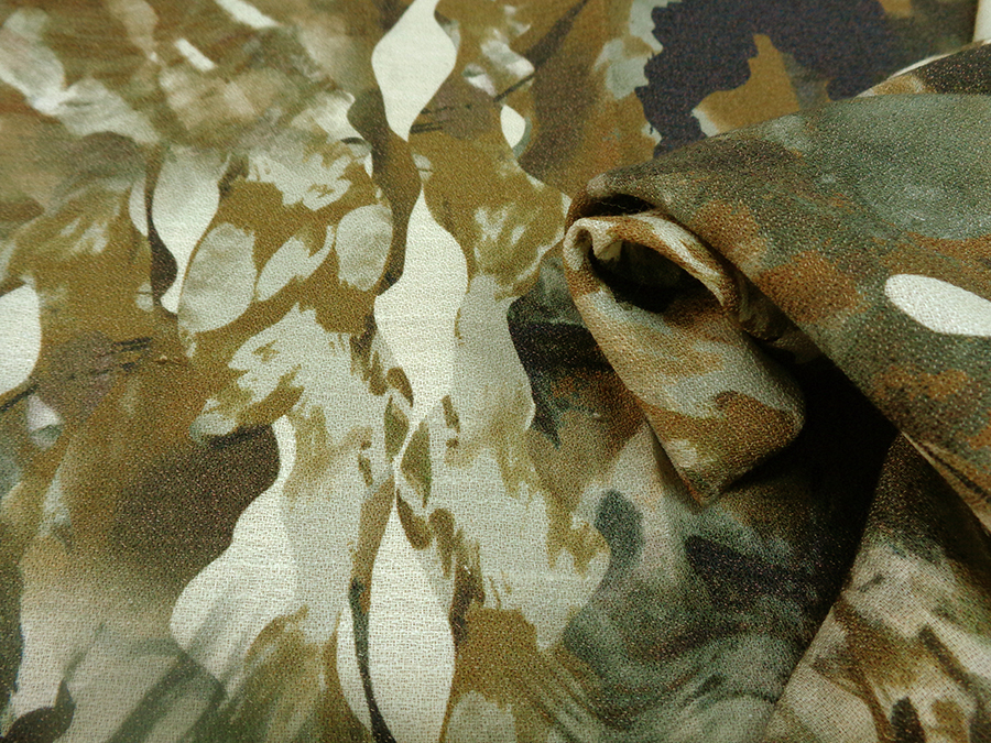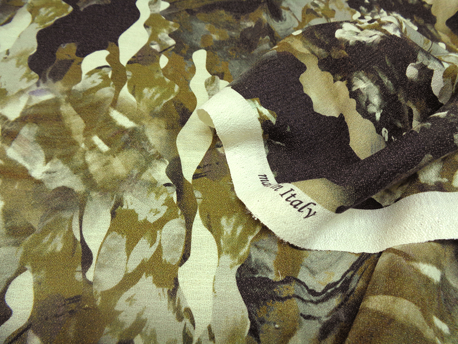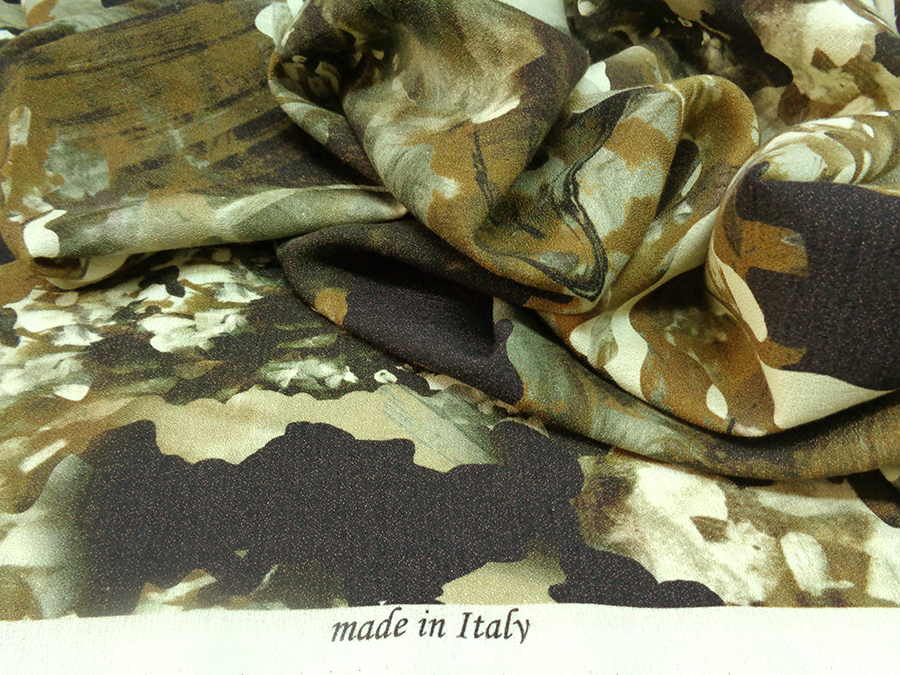 PREGIATA CREPELLA ALTA MODA IN PURA LANA, MORBIDA E FLUENTE CON CARATTERISTICA TRAMA CRESPA. FANTASIA STILIZZATA E SFUMATA SUI TONI DEL VERDE MUSCHIO, VERDE SALVIA , CREMA E NERO. INDICATO PER: ABITI, CASACCHE, GONNE, PANTALONI MORBIDI, ECC..