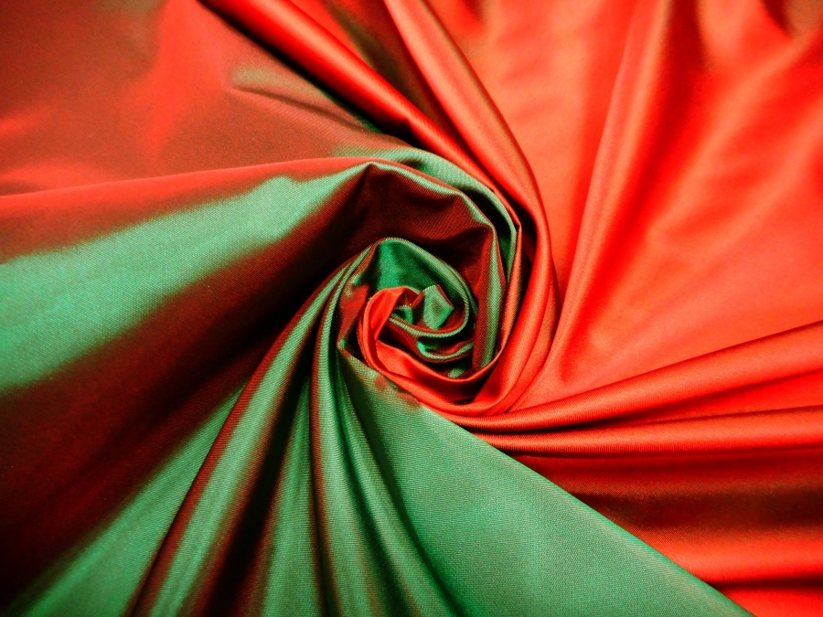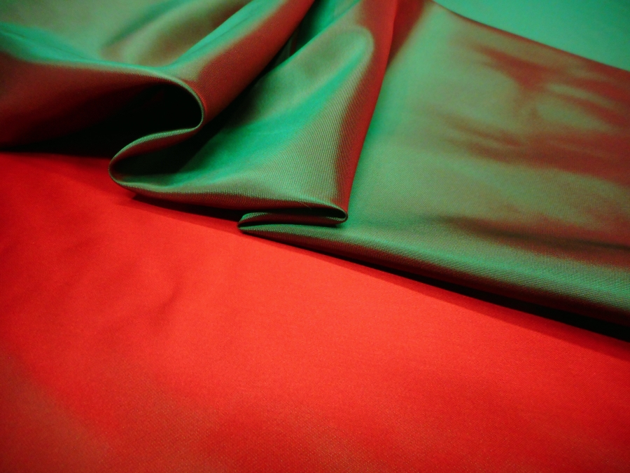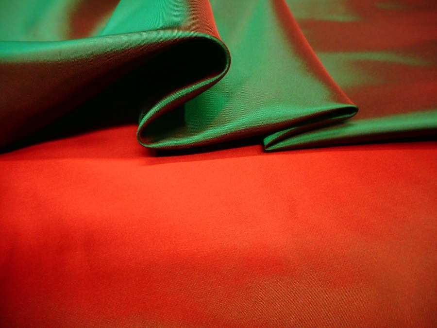 DUCHESSE ART. CANGIANTE V. ROSSO/VERDE 30% SETA 70% ACETATO € 40,00 AL MT PREZZO STOCK H. 150 MADE IN ITALY GR.300. CONSISTENTE E LUMINOSA DUCHESSE CON FONDO ROSSO CANGIANTE CON FILATO VERDE IN TRAMA. POSSIBILITA’ DI USO IN DOUBLE FACE. INDICATA PER: SPOSA E CERIMONIA