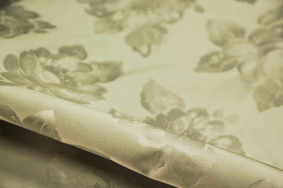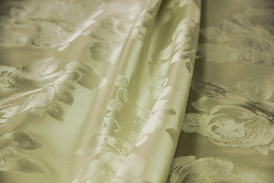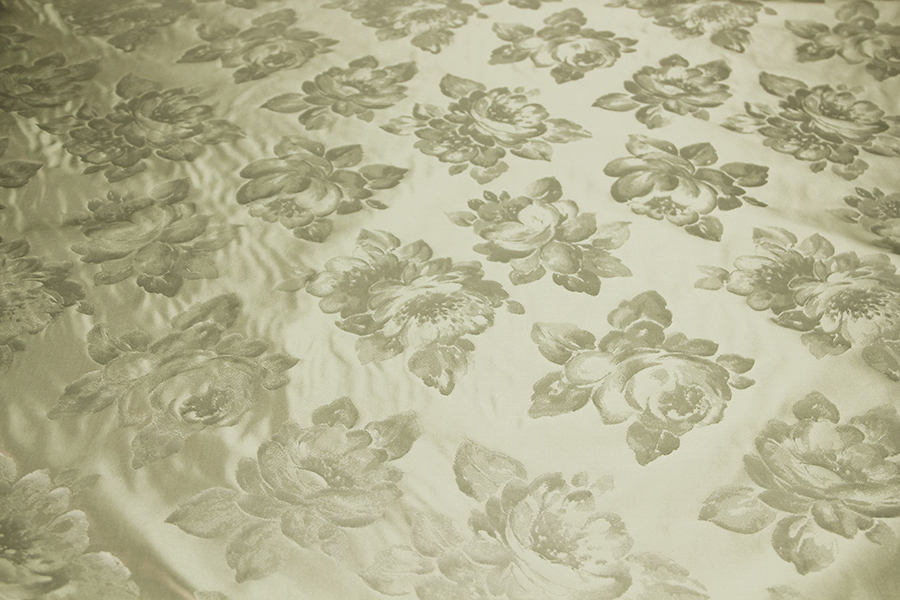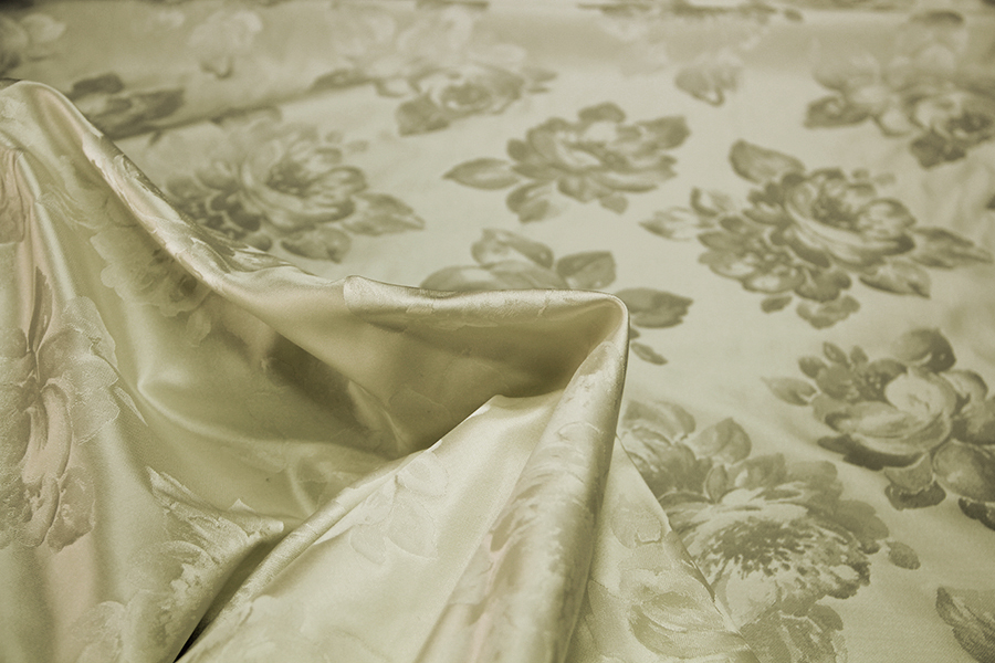 PREGIATA DUCHESSE, CONSISTENTE E SEMIRIGIDA, CON ROSE DAMASCATE TINTA SU TINTA. INDICATA PER: ABITI, GIACCHE, SPOSA, CERIMONIA, GONNE, ECC