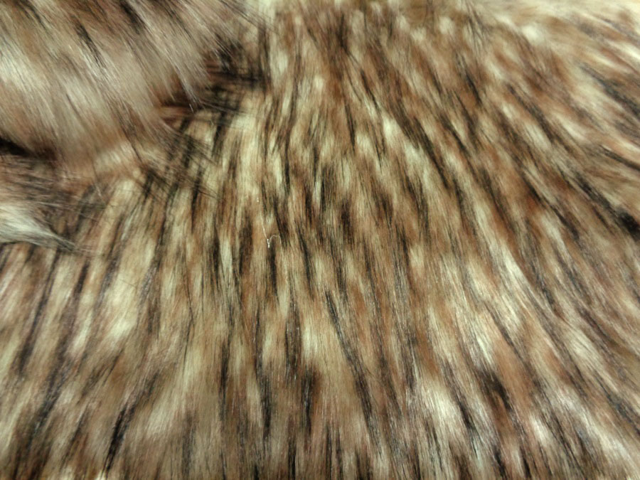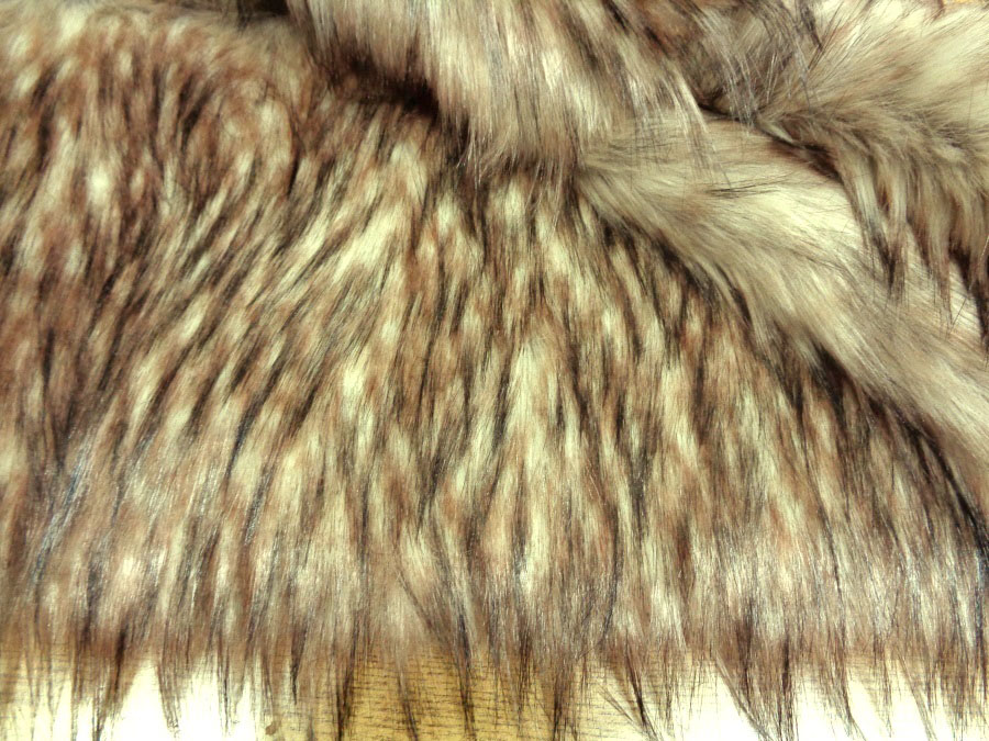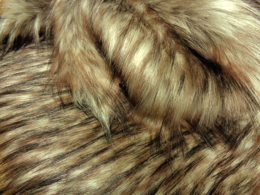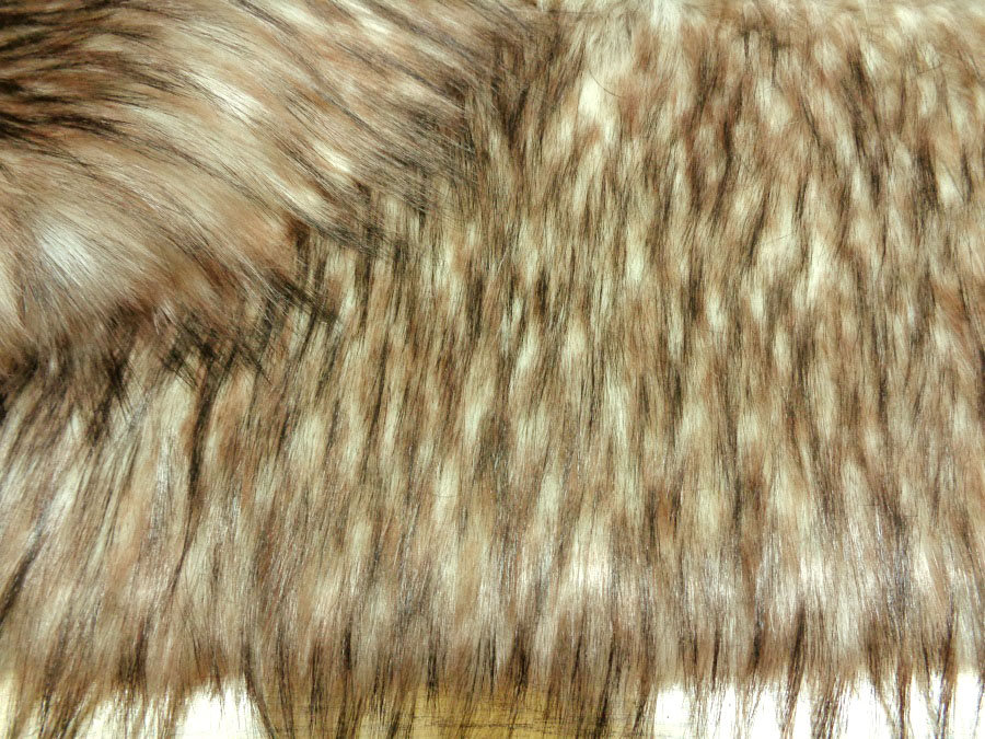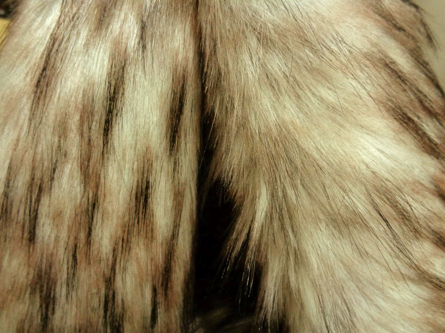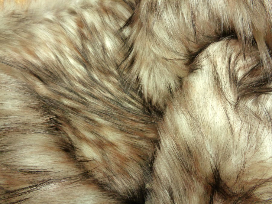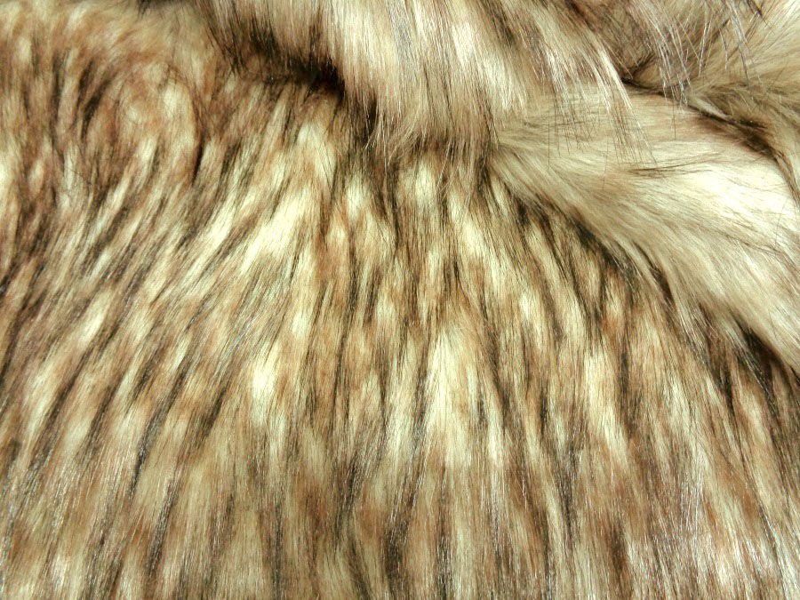 ESCLUSIVA ECO PELLICCIA PARI AL VERO, CON PELO LUNGO, PESANTE E CORPOSO, SFUMATA DAI TONI DEL SABBIA AL NOCCIOLA CON PUNTA DEL PELO IN SFUMATURA NERA.