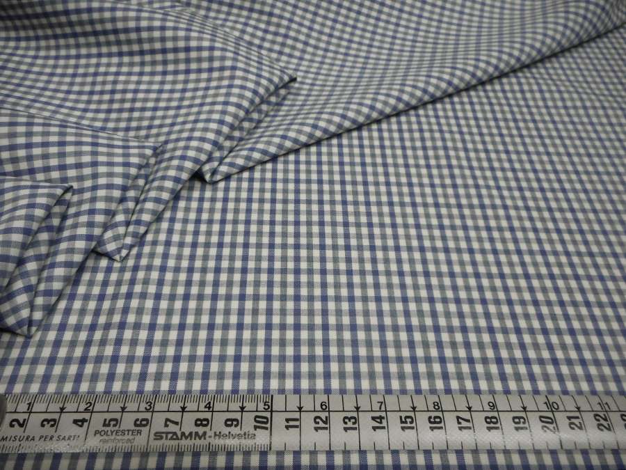 PREGIATA LANA ESTIVA PETTINATA, LEGGERISSIMA, SETOSA, FRESCA E SCATTANTE, INGUALCIBILE,  CON QUADRETTO SUI TONI DEL BLU CHIARO , BIANCO  E GRIGIO MEDIO. INDICATA PER: GIACCHE, PANTALONI, ABITI, ECC..