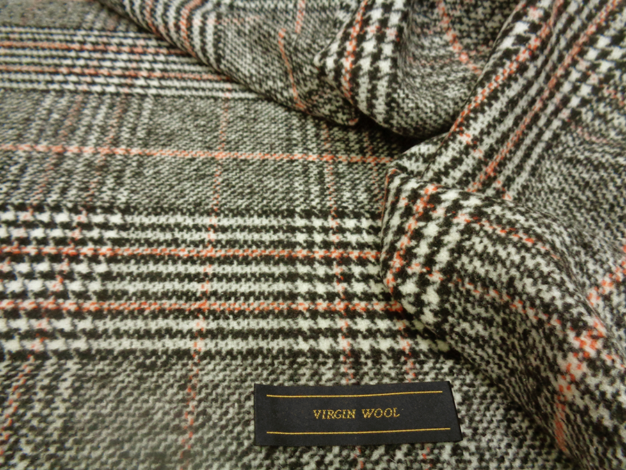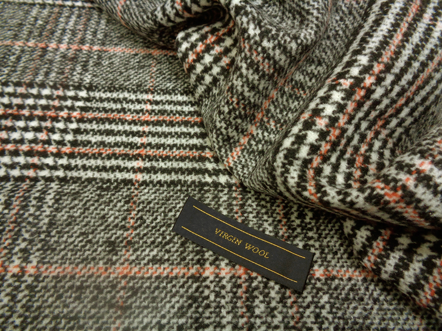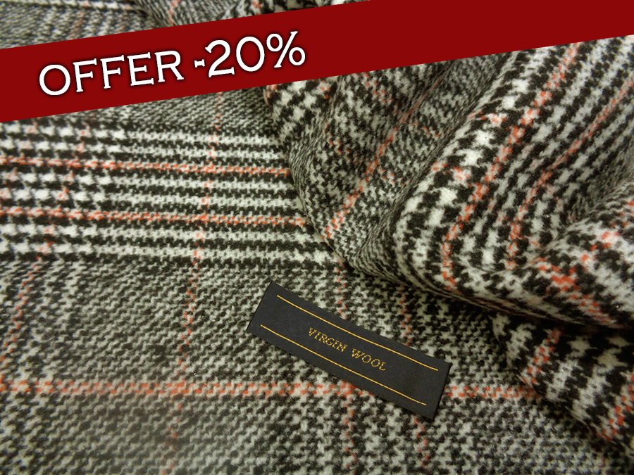 PREGIATO TESSUTO IN LANA E CASHMERE PESANTE, CORPOSO, COMPATTO E SETOSO CON GRANDE PRINCIPE DI GALLES SUI TONI DEL BIANCO / NERO E RIGA SALMONE. TESSUTO UNISEX INDICATO PER: CAPPOTTI,GIACCONI, GIACCHE PESANTI, TAILLEUR, MANTELLE, PLAID, ECC..