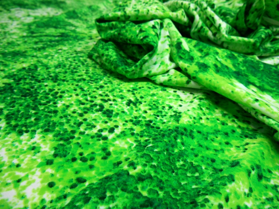 MAGLINA ART. MA GREEN VAR. VERDE 96% POLIESTERE 4% ELASTAME H 140 € 15,00 AL MT MADE IN ITALY. MORBIDISSIMO JERSEY OPACO CON FANTASIA ASTRATTA SUI VARI TONI DEL VERDE PRATO . INDICATA PER: ABITI, GONNE, TOP, CASACCHE, TUTE, ECC..