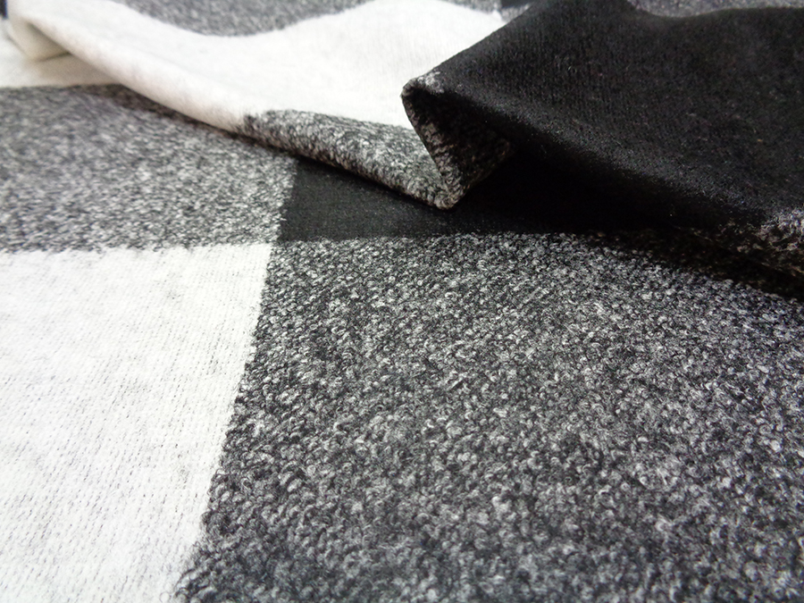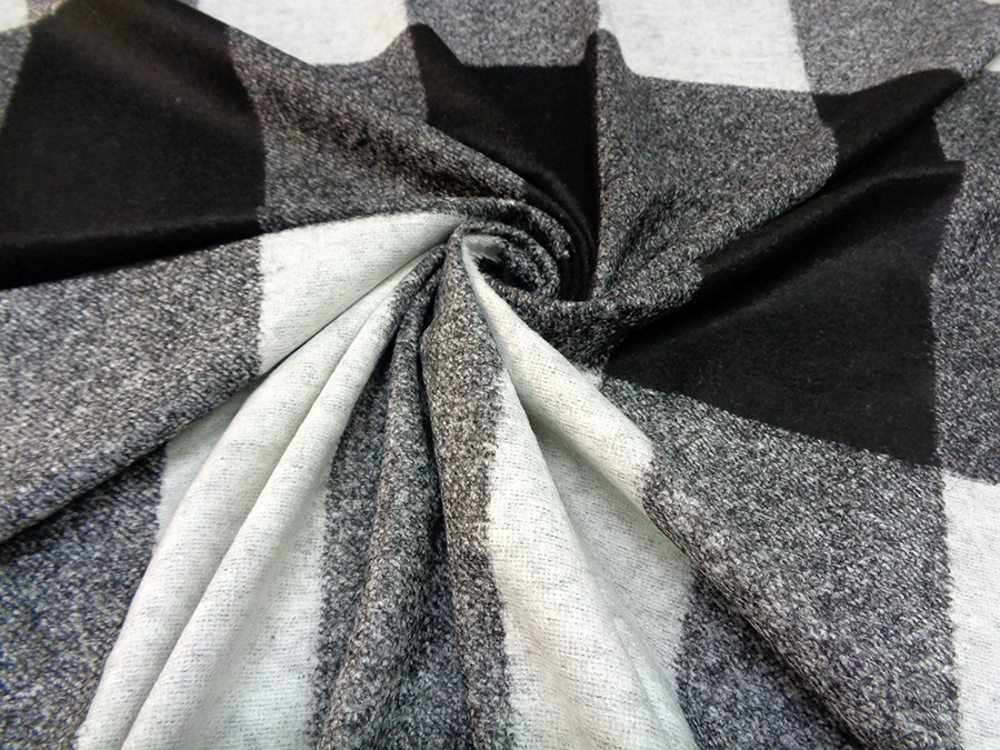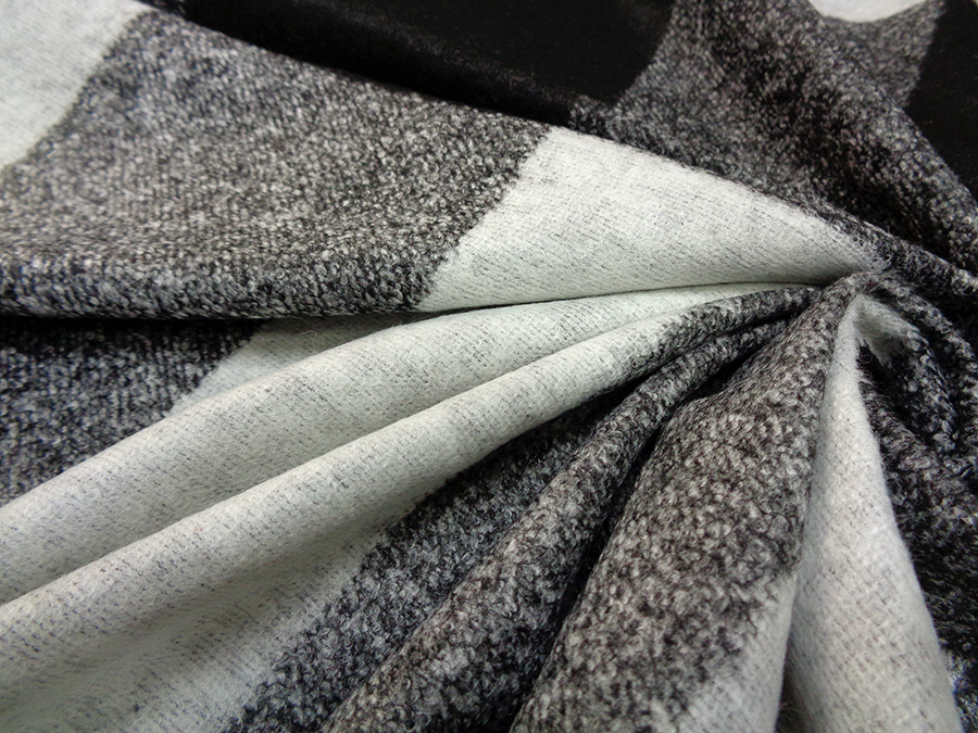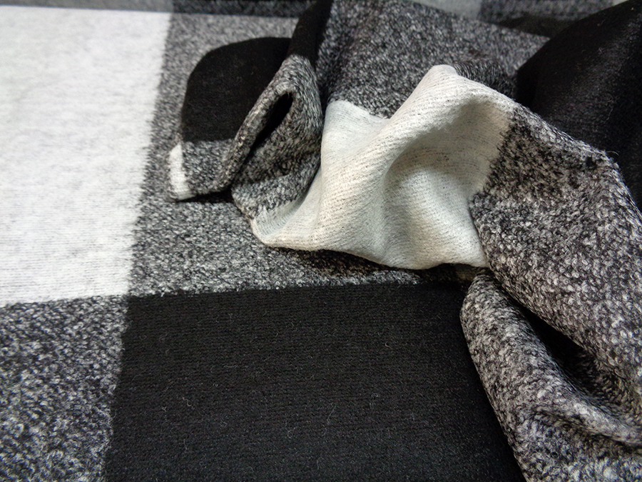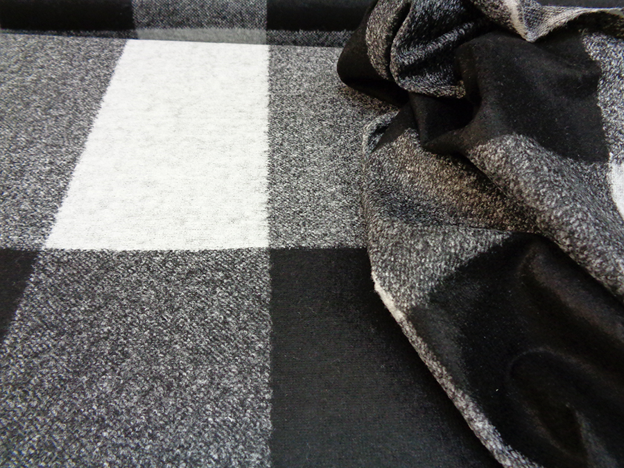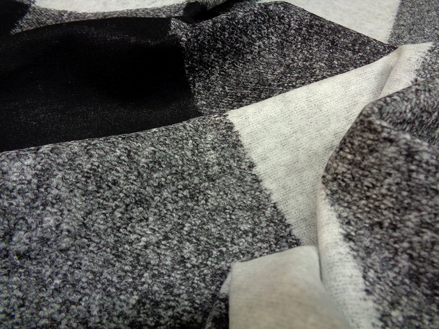 PREGIATO ED ESCLUSIVO TESSUTO IN JERSEY DI LANA E CASHMERE, PESO MEDIO, MORBIDO, CALDO E CONFORTEVOLE CON GRANDI RIQUADRI SUI TONI DEL NERO, BIANCO E GRIGIO MELANGE. INDICATO PER: ABITI, CASACCHE, BLUSE, MANTELLE, GONNE, SPOLVERINI, ECC..