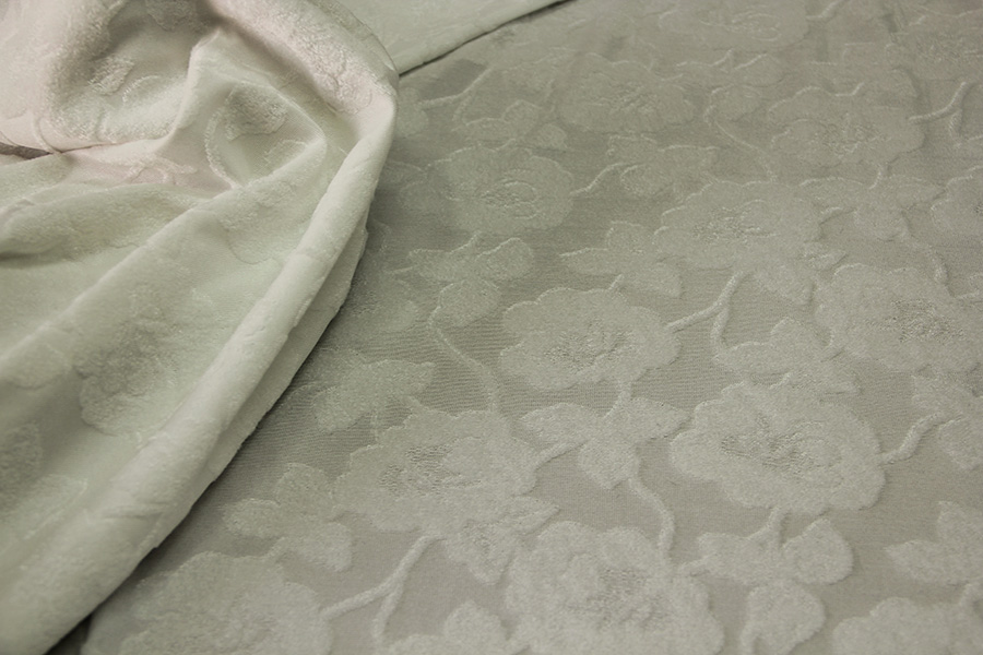 MORBIDO E LEGGERO JERSEY CON LAVORAZIONE IN VELLUTO DEVORE’ IN RILIEVO TINTA SU TINTA. INDICATO PER : ABITI, CASACCHE, GONNE, ECC..