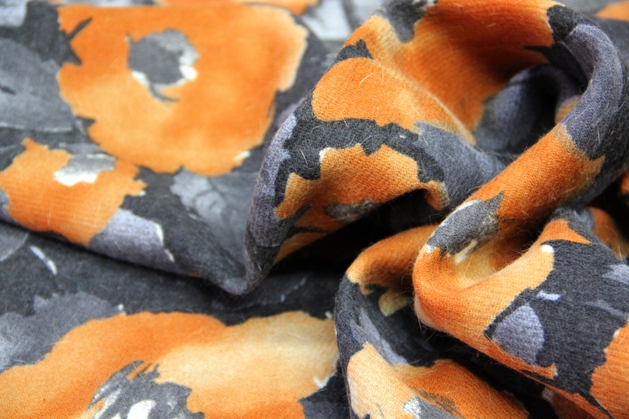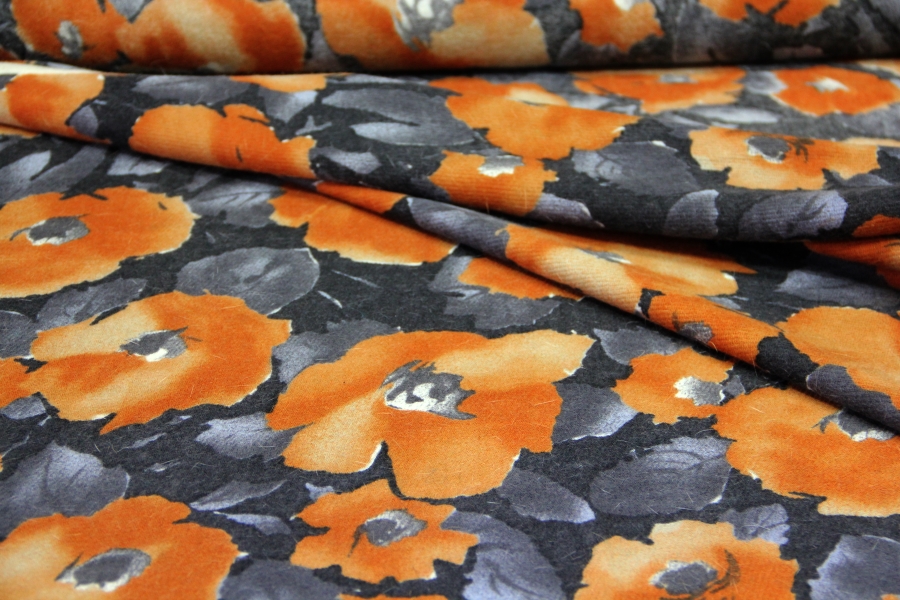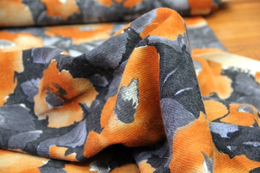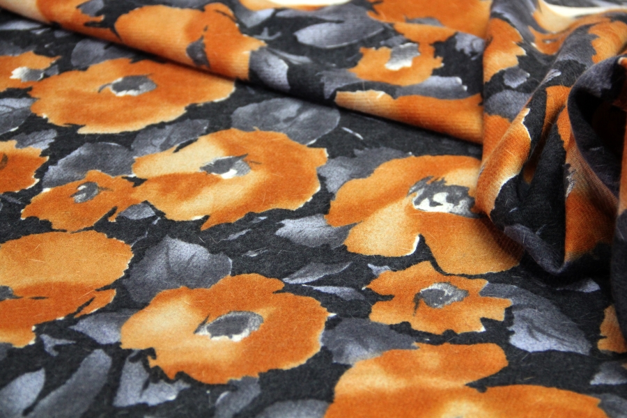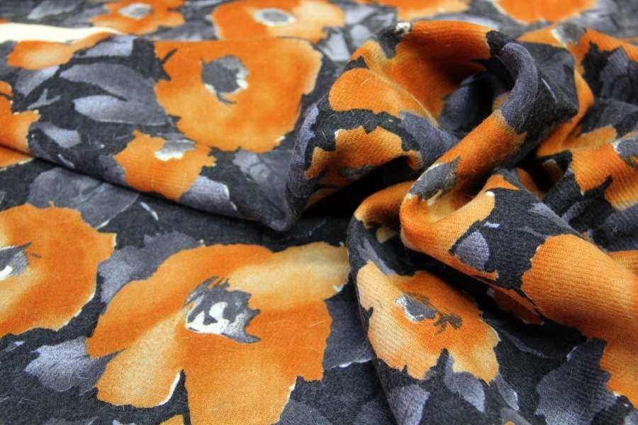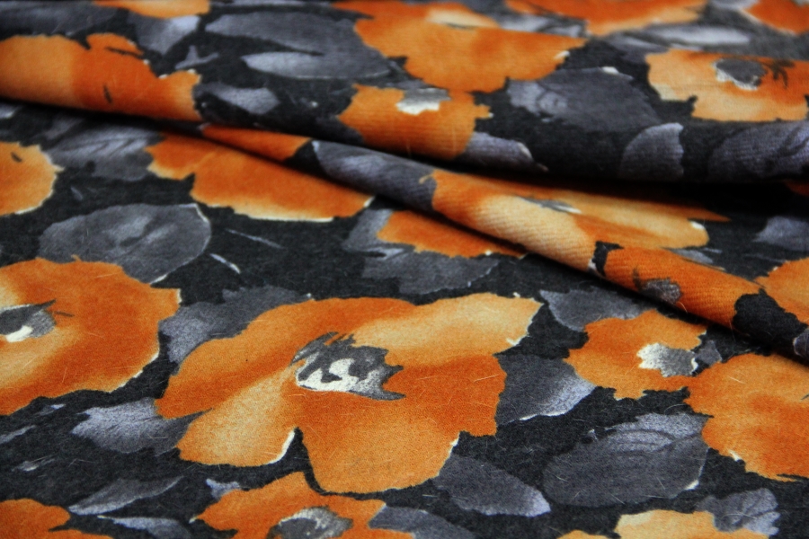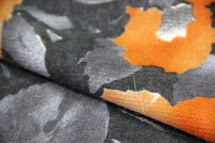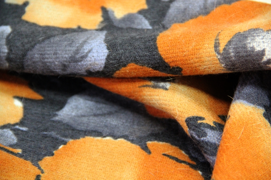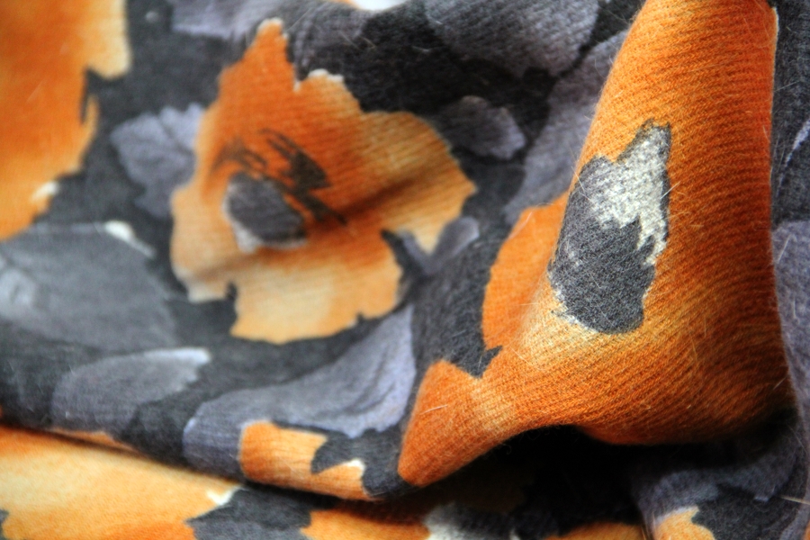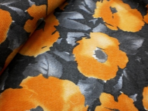 LANA ANGORA ARTICOLO MU V. 127 H 140 € 33,00 MT 30% ANGORA 70 % LANA MADE IN ITALY . FANTASIA FONDO GRIGIO CON FIORI OCRA . LANA MORBIDA INDICATA PER ABITI, CASACCHE, GONNE ECC.
