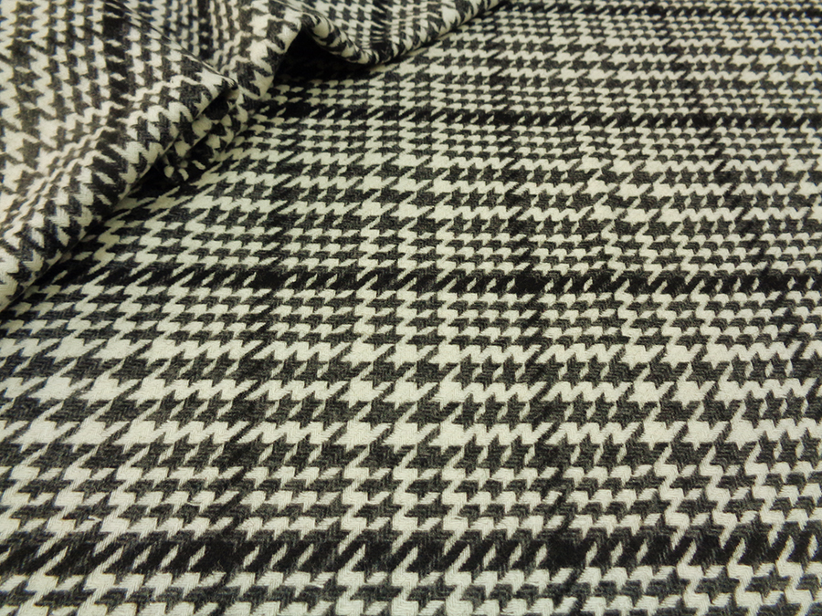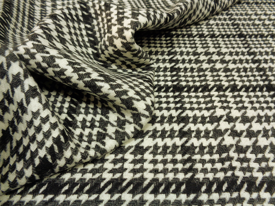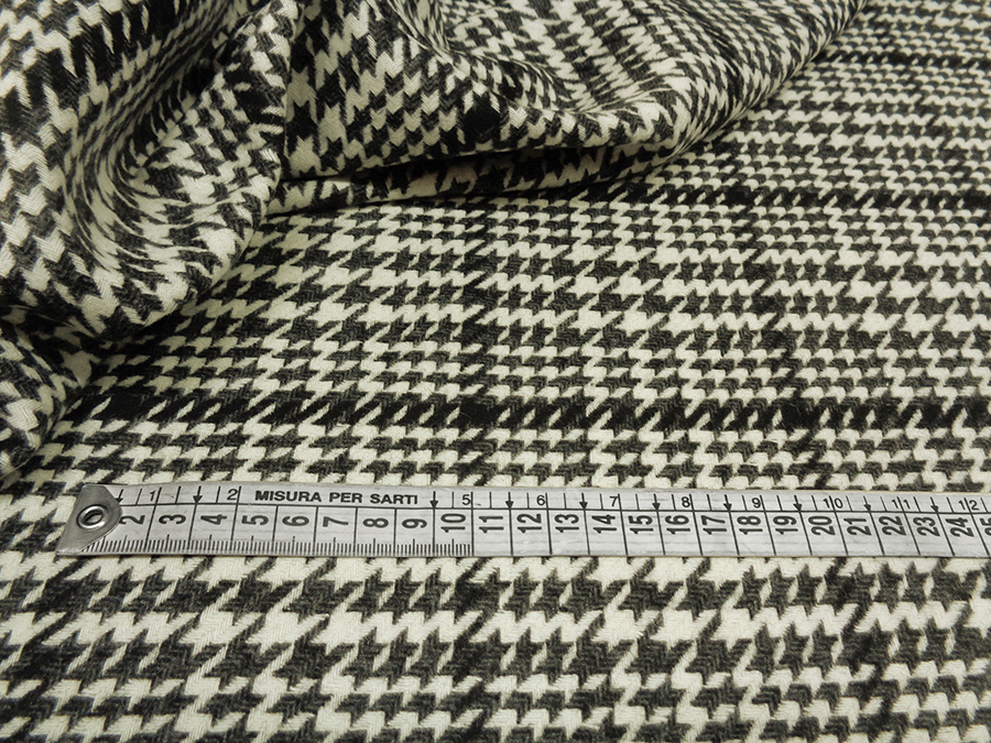 PREGIATO ED ESCLUSIVO TESSUTO IN LANA TRAMATA, PESO MEDIO, CALDO, MORBIDO ED OPACO. FONDO AVORIO CON GRANDE PRINCIPE DI GALLES SUI TONI DEL GRIGIO E NERO. TESSUTO UNISEX. INDICATO PER: SOPRABITO, CAPPOTTO LEGGERO, GILET, ECC..