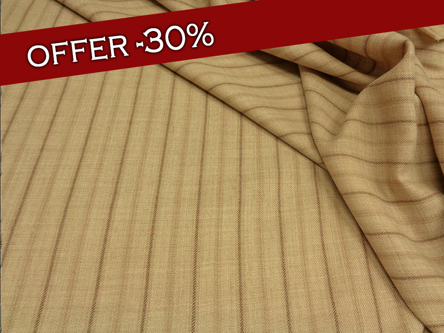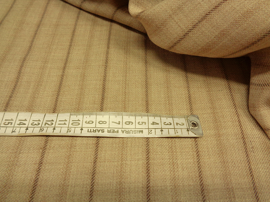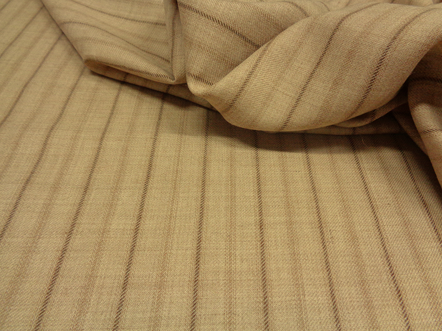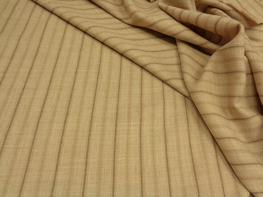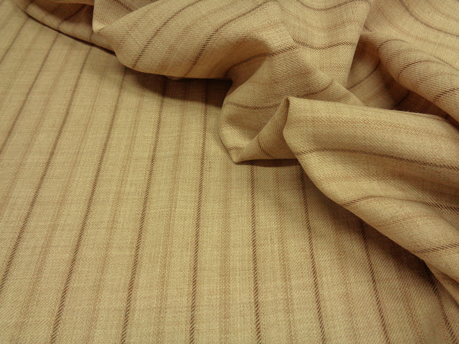 PREGIATA LANA CARDATA, MORBIDA E CALDA FONDO BEIGE CON RIGHE IN VERTICALE SUI TONI DEL MARRONE. INDICATO PER: ABITI, GIACCHE, PANTALONI , GONNE, ECC..