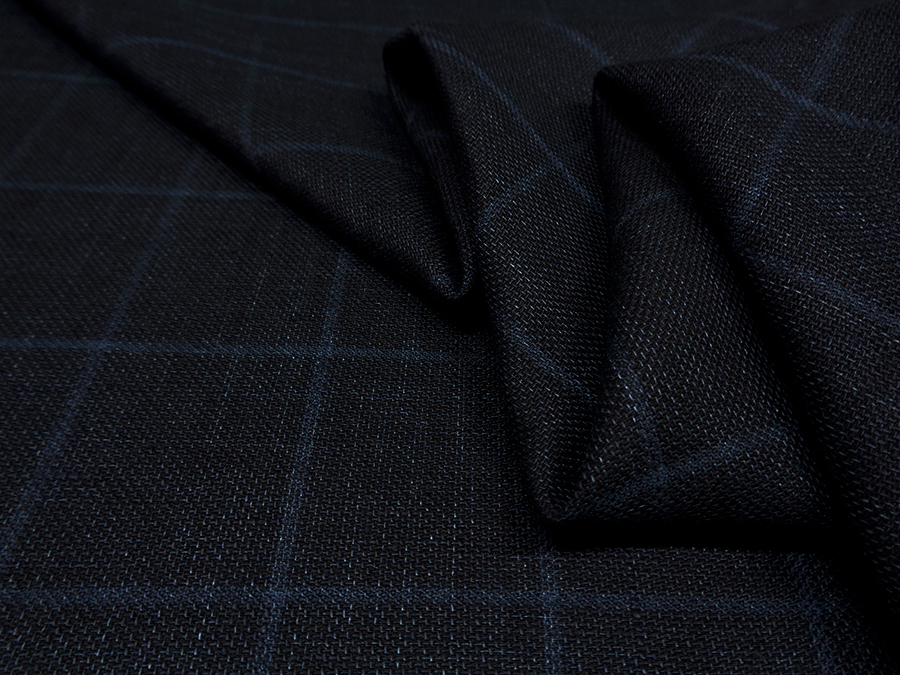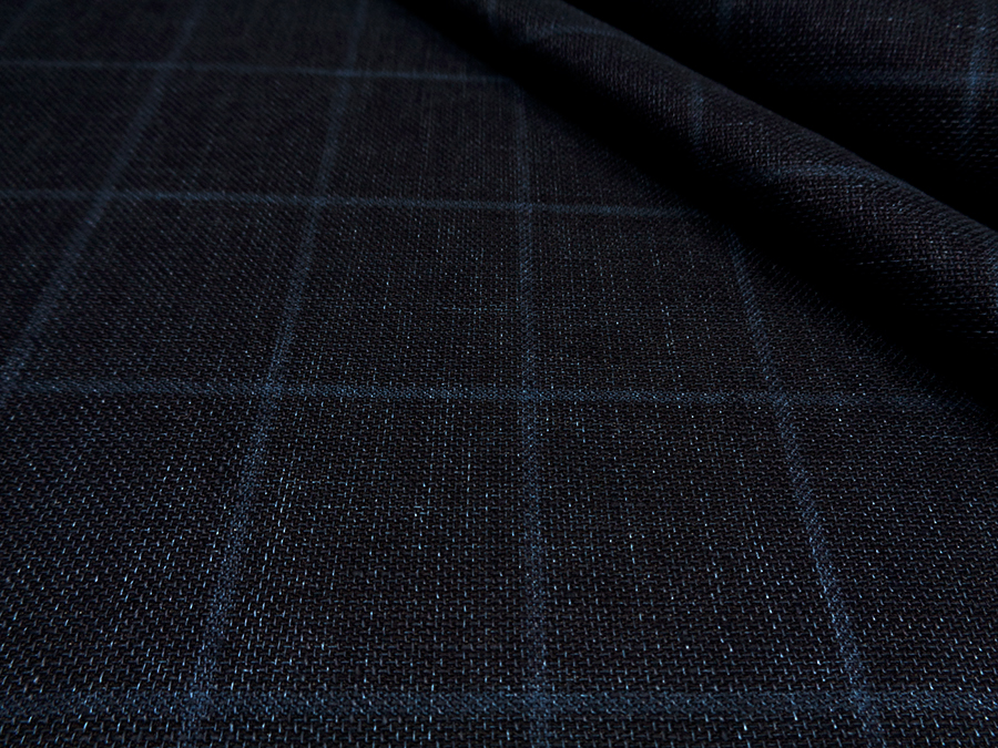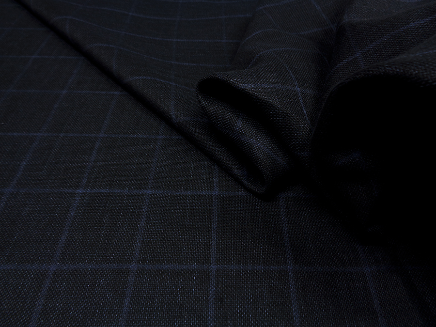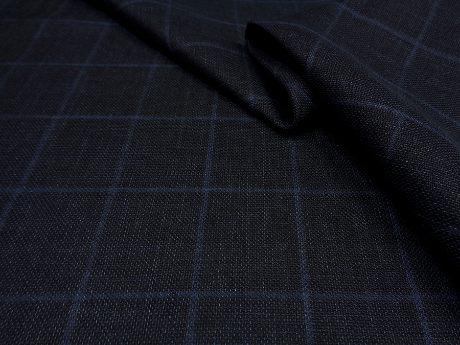BRIONI STOCK (NO SIGNED, LABEL) VERY FINE PURE LINEN, HEFTY AND COMPACT. BLUE MELANGE COLOUR WITH INDIGO OVERCHECK.