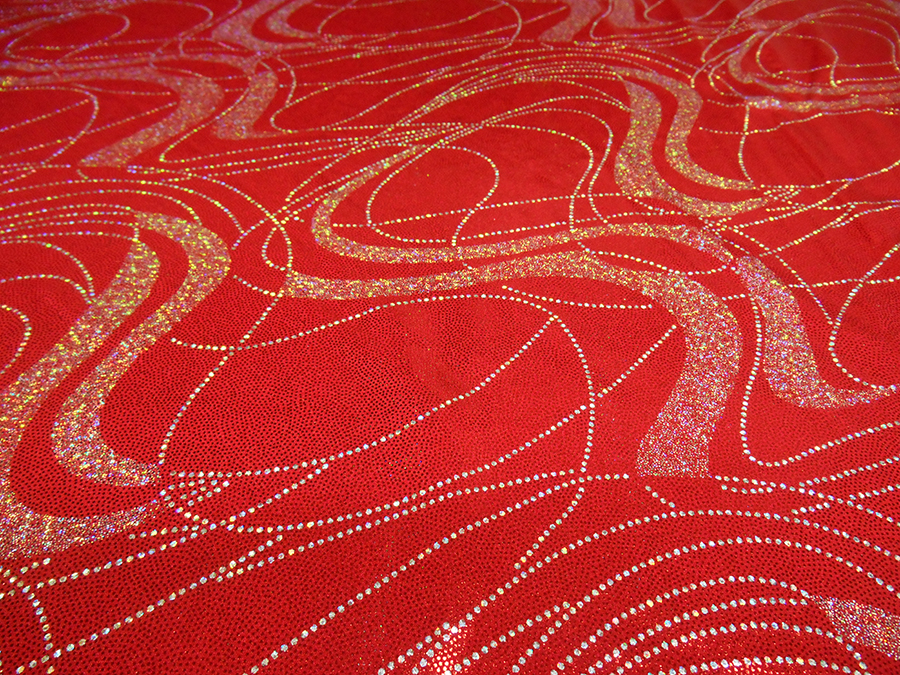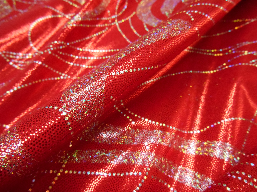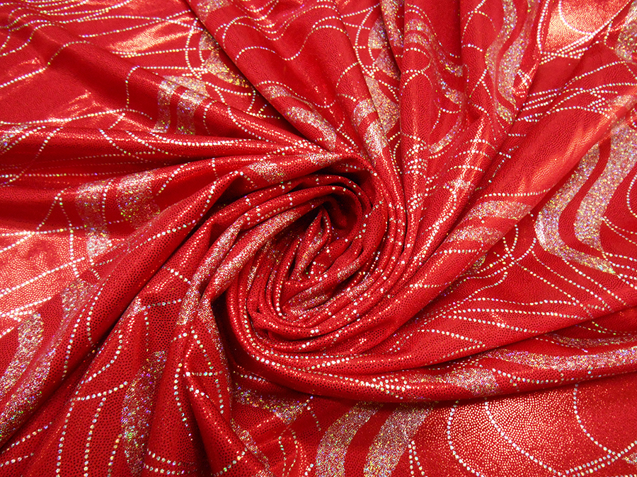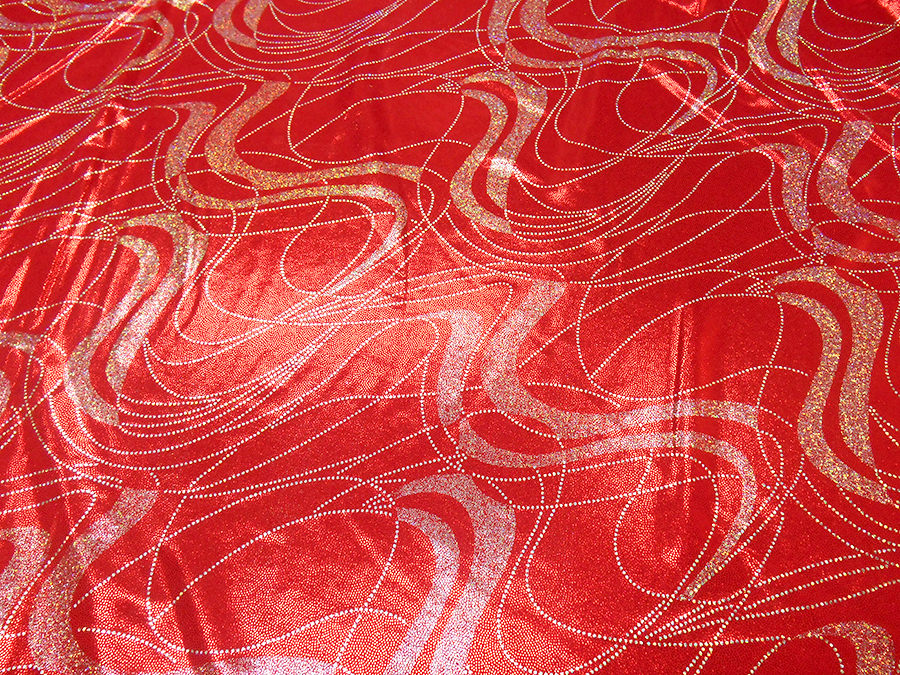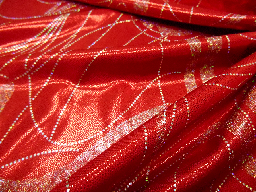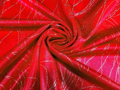 LYCRA A BIELASTICA ARTICOLO CARTER V.ROSSO € 28,00 MT. H 140. 100% POLIESTERE. LUMINOSA LYCRA BIELASTICA, CONSISTENTE CON DISEGNI STILIZZATI ARGENTO. INDICATO PER: ABITI DA BALLO, SPETTACOLO