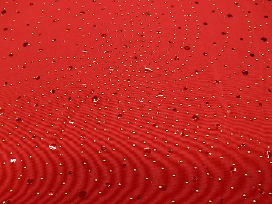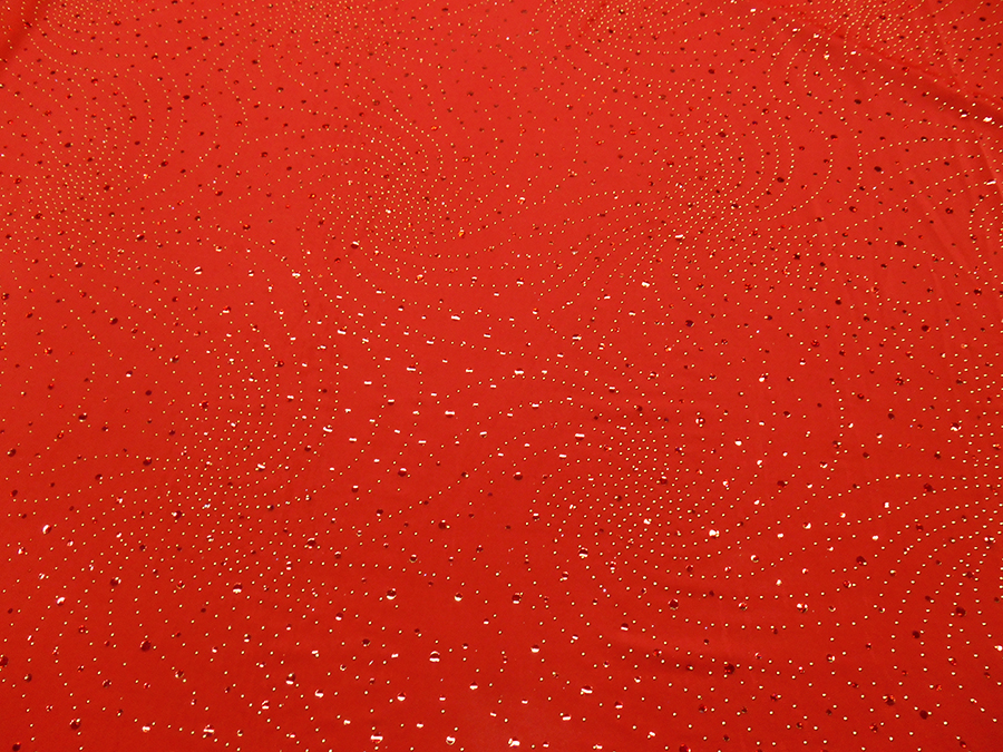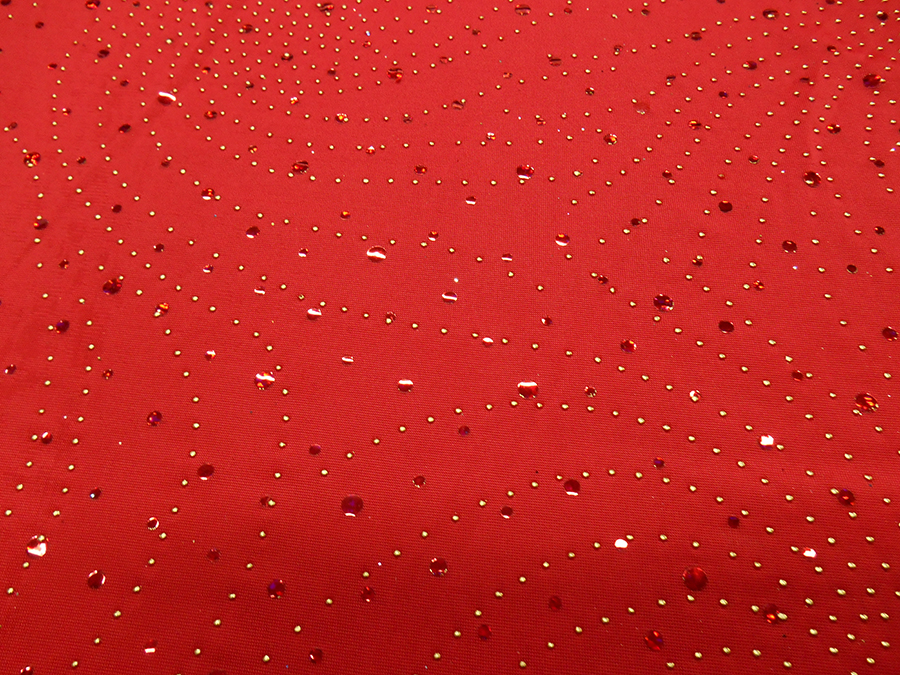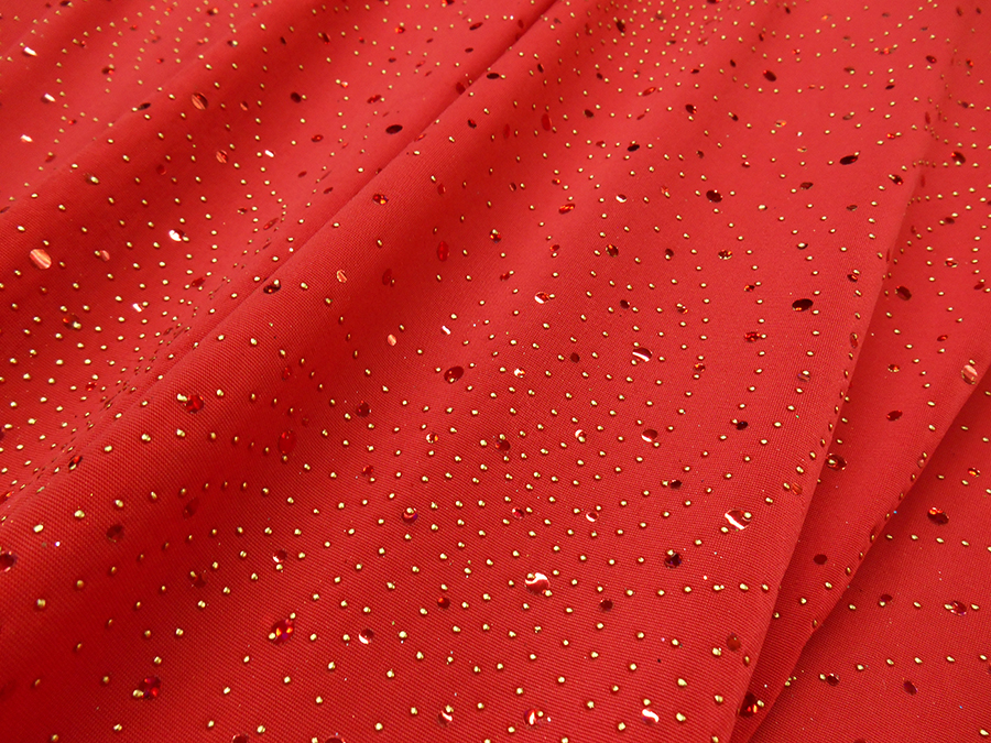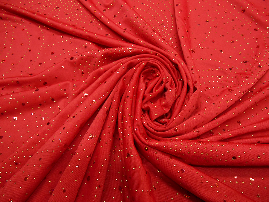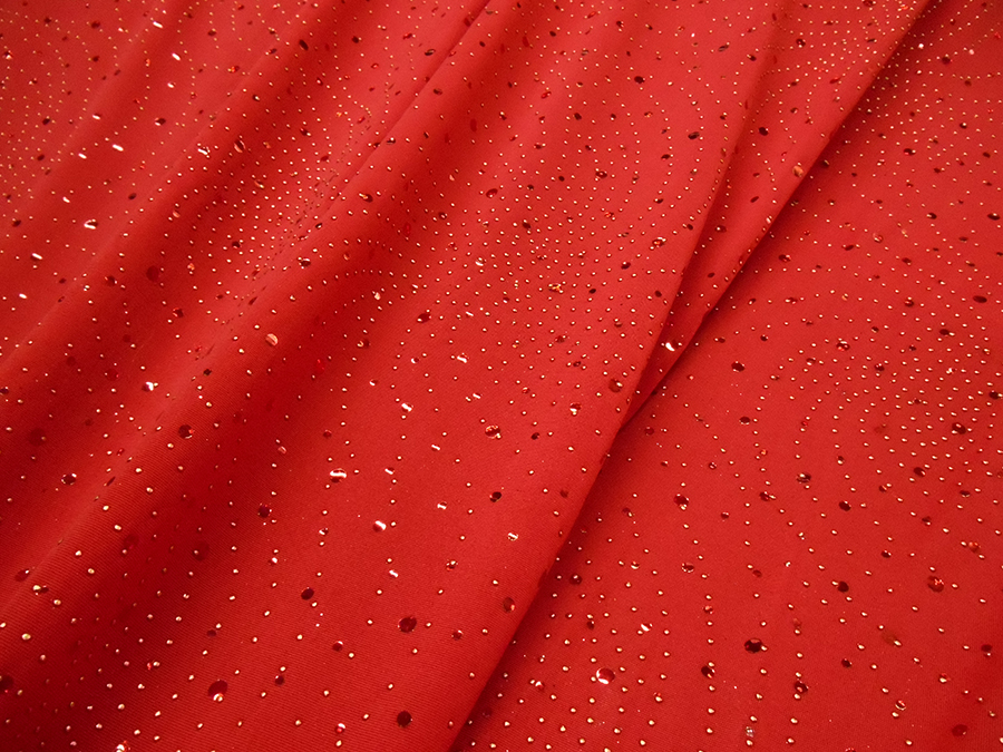 MAGLINA BIELASTICA DX LOLITA V. ROSSO € 15,90 MT. H 140 COMPOSIZIONE: 95% POLIESTERE, 5% ELASTAM. COLORE: FONDO ROSSO CON PAILLETTES INCOLLATE ROSSE CANGIANTI
