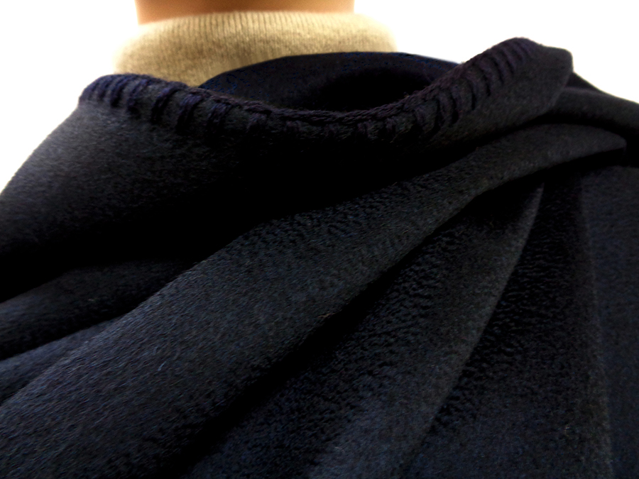 La preziosa qualità del tessuto in puro cashmere zibellino doubleface risulta Morbidissima, soffice, setosa ed avvolgente, ed è il frutto di una lavorazione artigianale che abbina due strati di prezioso tessuto; la lavorazione a telaio crea un tessuto doppio e allo stesso tempo morbido dalle qualità raffinate: le nobili fibre del cashmere doubleface offrono una texture dalla mano estremamente liscia, morbida, compatta e setosa; per un risultato, molto caldo e piacevole all’indosso.