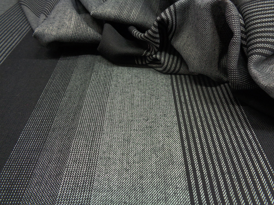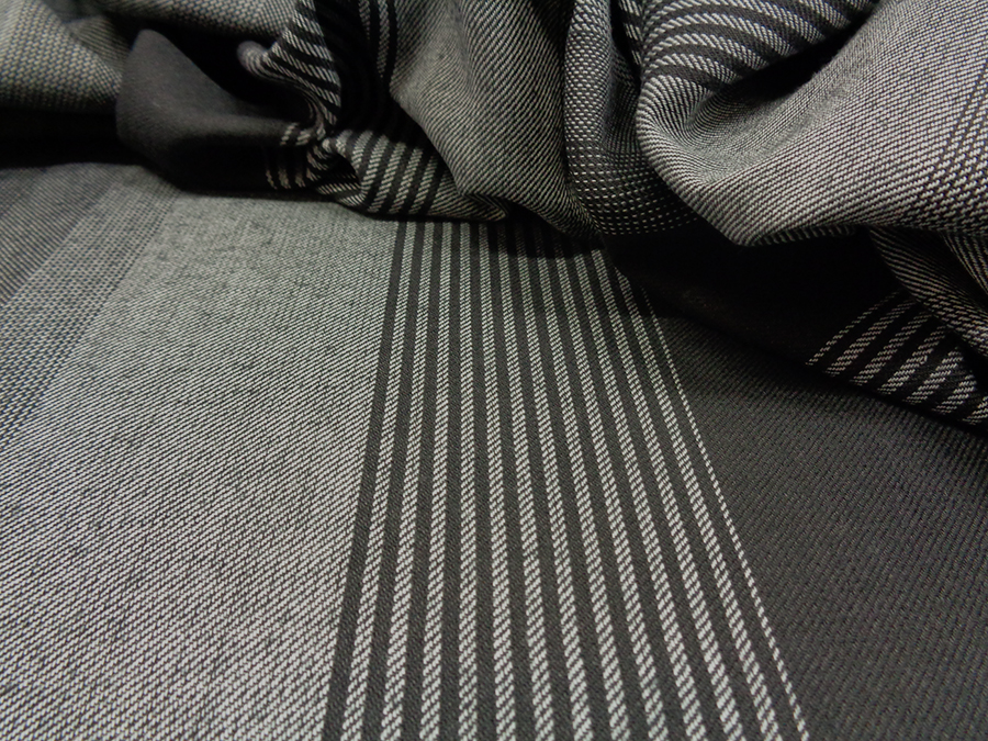 PREGIATA  MUSSOLA  IN FIBRA NATURALE CON MANO LEGGERMENTE FELPATA MORBIDA CALDA  E CONFORTEVOLE, CON FASCE SUI TONI DEL GRIGIO, NERO. POSSIBILITA’ DI LAVORAZIONE SIA IN VERTICALE CHE ORIZZONTALE. IDEALE PER PERSONE ALLERGICHE ALLA LANA.