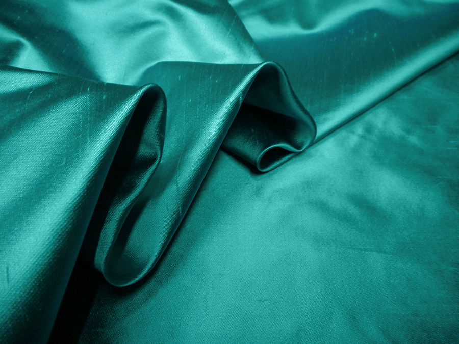 CONSISTENT AND BRIGHT SHANTUNG WITH BLAZE WEFT IN THE HORIZONTAL EFFECT CHANGING DUE OF DOUBLE YARN WITH BLACK CHAIN . POSSIBILITY ‘ USE BY BOTH SIDES . SUITABLE FOR : DRESSES , SKIRTS , JACKETS , STOLE , CORSET , TROUSERS , WEDDING AND CEREMONY FOR MEN AND WOMEN