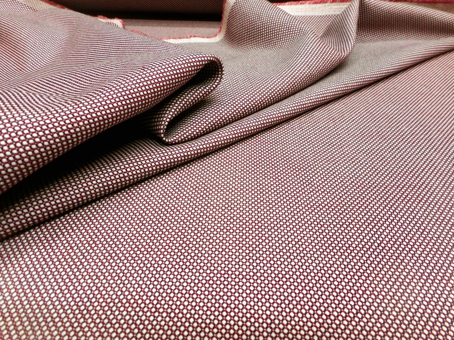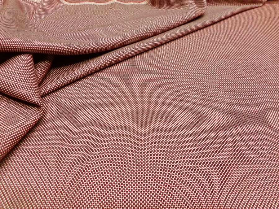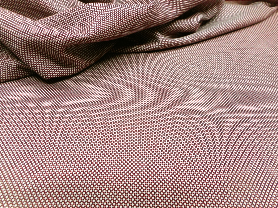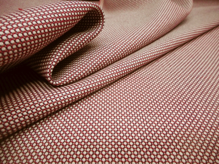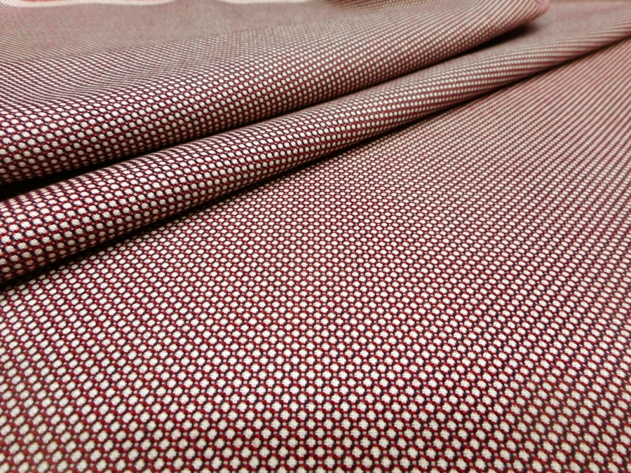 CANCLINI  STOCK (NO FIRMATO, NO CORREDATO DA ETICHETTE) PREGIATO COTONE CONFORT PESO MEDIO, MORBIDO E CONFORTEVOLE CON DISEGNO OCCHIO DI PERNICE RUBINO E BIANCO.