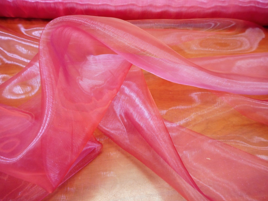 LEGGERISSIMA E TRASPARENTE ORGANZA CANGIANTE , CON CLASSICO EFFETTO CROCCANTE E SEMIRIGIDO. INDICATA PER : STOLE, ABITI, GONNE, CASACCHE, ECC