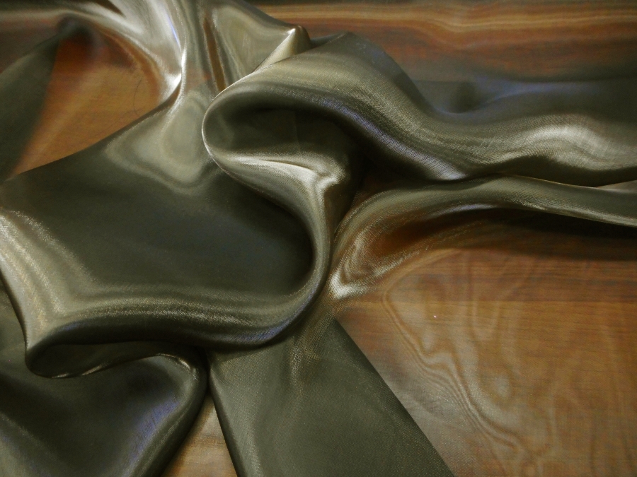 ORGANZA CANGIANTE CON PARTICOLARE EFFETTO ‘’ACQUA’’ ; LEGGERMENTE TRASPARENTE E SEMIRIGIDA. ,. INDICATA PER : STOLE, ABITI, GONNE, CASACCHE, ECC