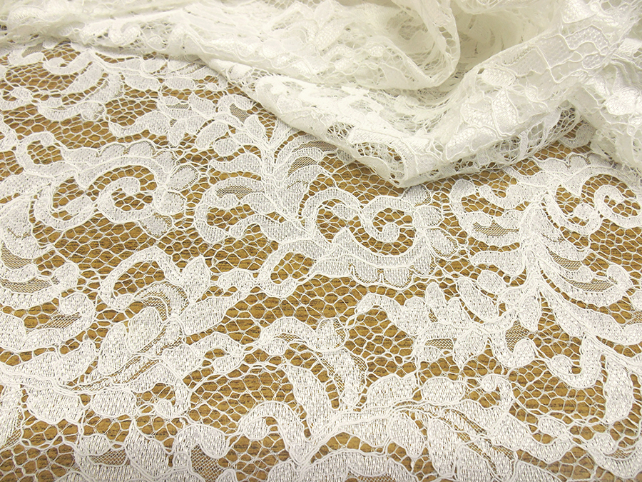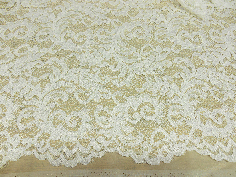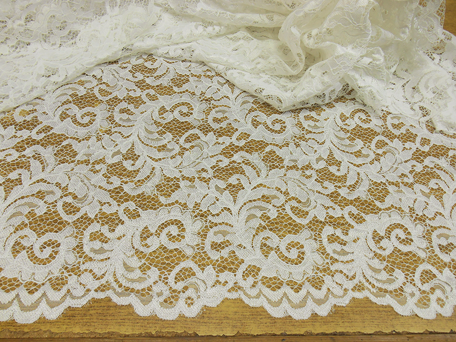 ART. PIZZO DENTELLE  V. BIANCO OTTICO 100% POLIESTERE  € 29,00 /MT .  H 150 PIZZO REBRODE’ , CON LEGGERO CORDONETTO IN RILIEVO, OPACO E RIFINITO CON 2 FESTONI UGUALI DA AMBO I LATI. INDICATO PER : ABITI, CASACCHE, GONNE, ECC