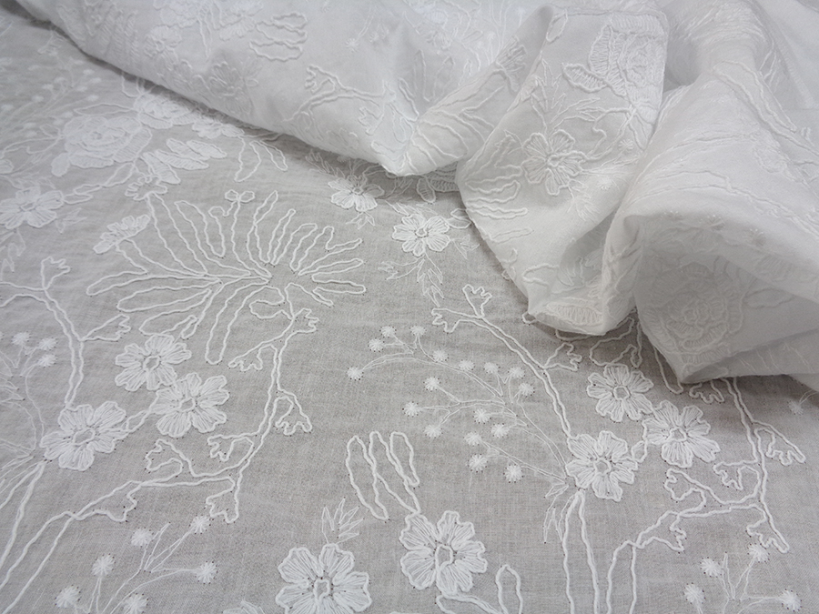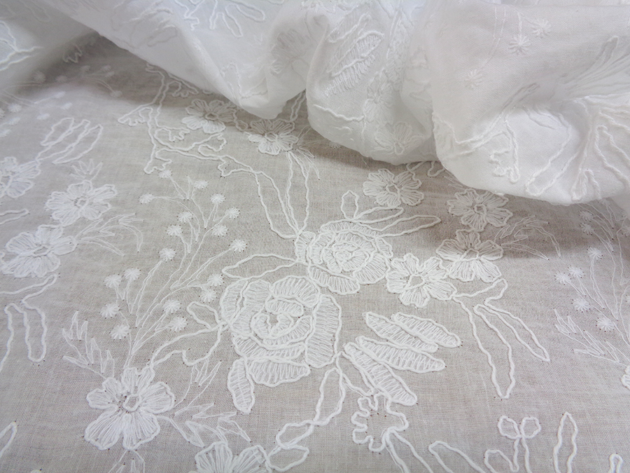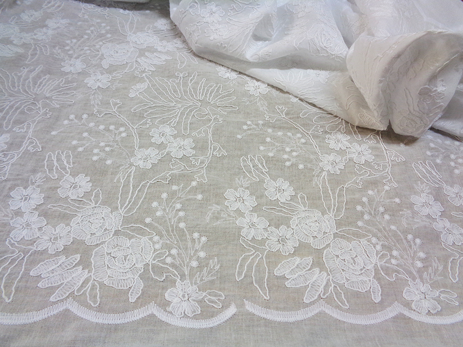 PRECIOUS SANGALLO LACE IN SWISS BATISTA OF PURE COTTON WITH RICH EMBROIDERY LACE EFFECT. FINISHED WITH 2 EQUAL FESTONS ON BOTH SIDES (TO BE CUT) EMBROIDERY IN H 130. SUITABLE FOR: DRESSES, SKIRTS, BLOSSAS, TOP, ETC .