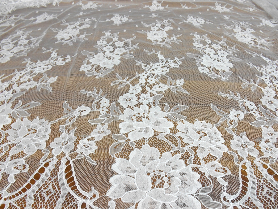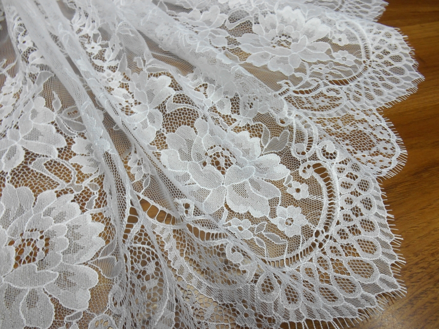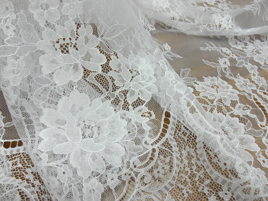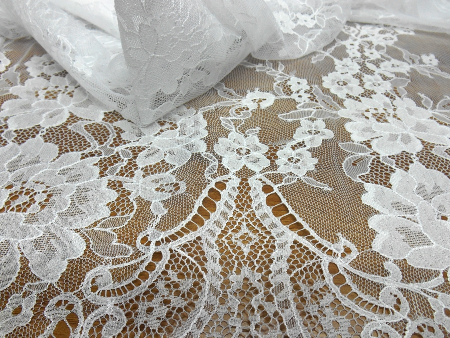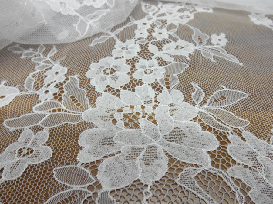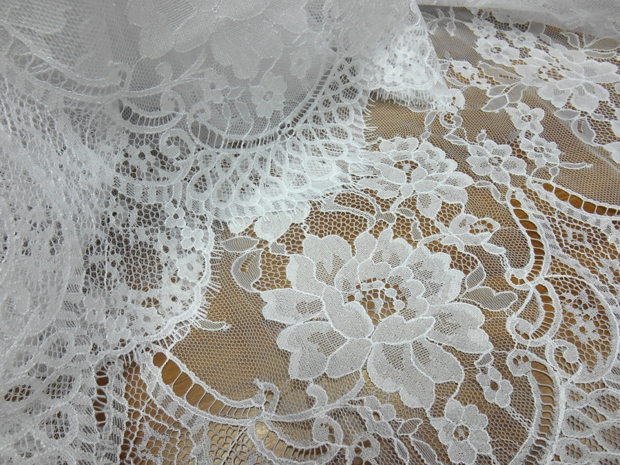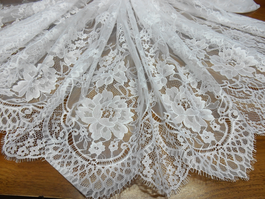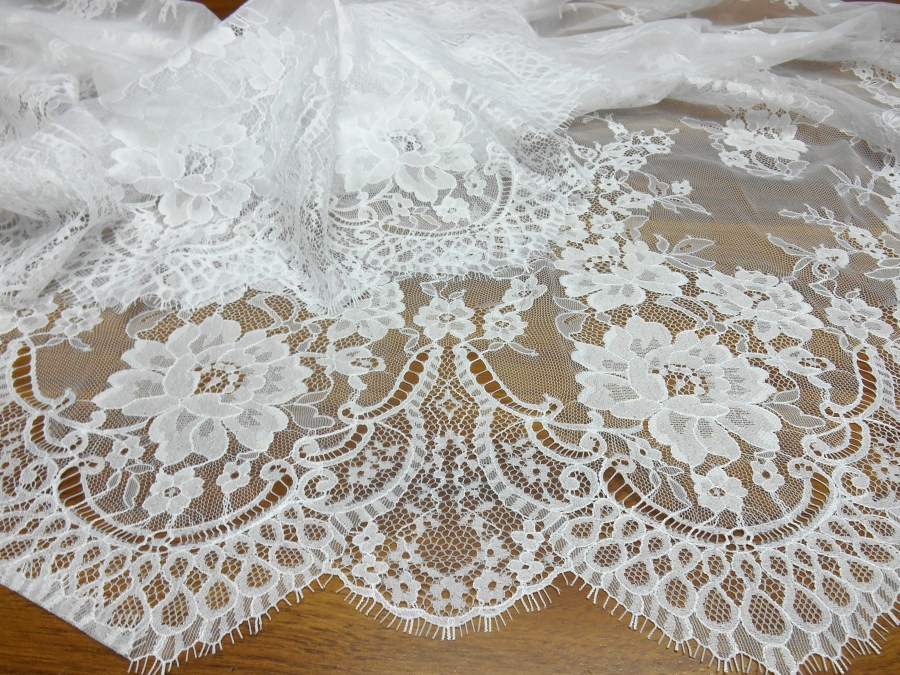 ART PI VERSAILLES PIZZO VALENCIENNE V. BIANCO OTTICO  € 69,00 AL MT.  22% VISCOSA/RAYON 78%PA. H 140  RIFINITO CON 2 FESTONI UGUALI DA AMBO I LATI. PIZZO FRANCESE SU BASE TULLE, MOLTO LEGGERO. INDICATO PER: ABITI, TOP, CAMICIE, GONNE, ECC.