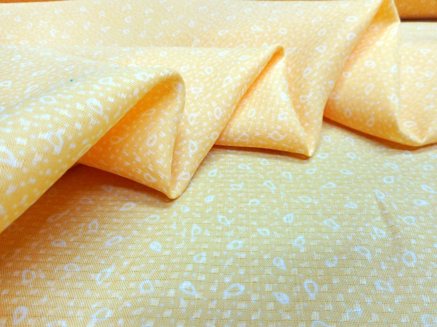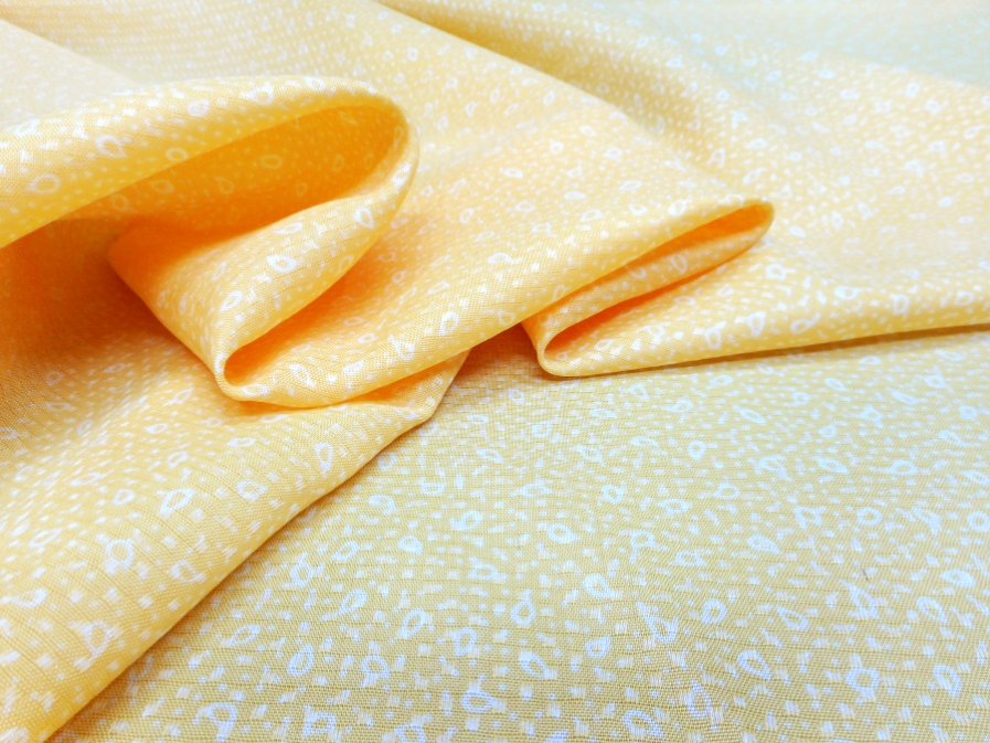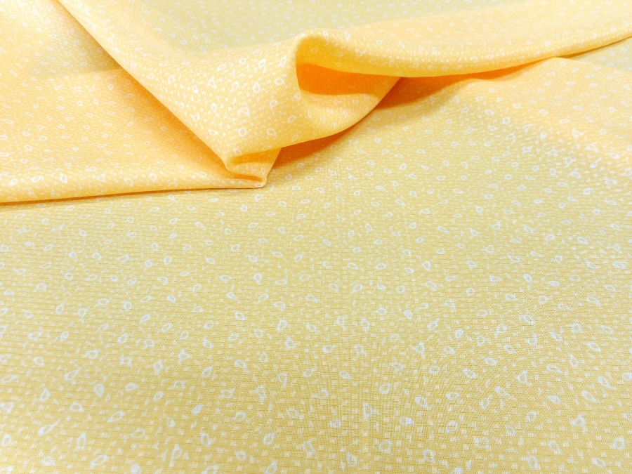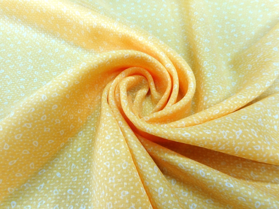 AUTENTICO VINTAGE ANNI 70. CREPE DE CHINE MORBIDA , COPRENTE ED OPACA , FONDO GIALLO SOLE CON LAVORAZIONE IMPRIME LUCIDA OPACA E PICCOLO DISEGNO CRAVATTINA BIANCO. CIMOSA LEGGERMENTE IMPOLVERATA . INDICATA PER: ABITI, CAMICETTE, GONNE ,CAFTANI, ECC