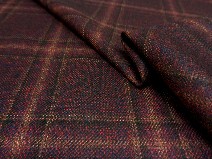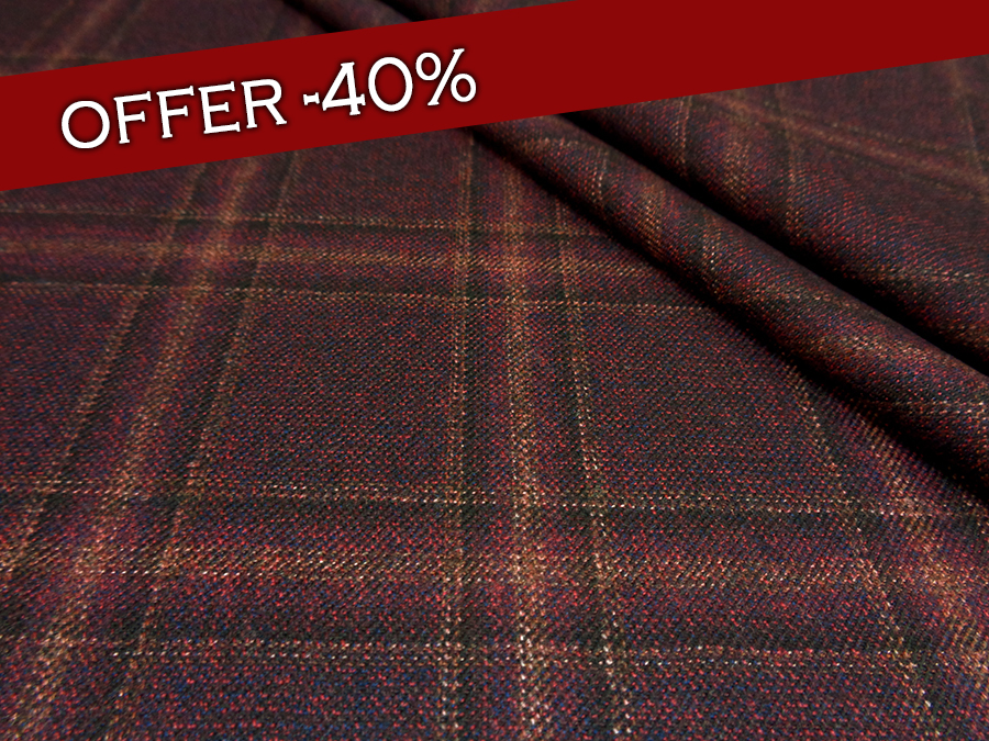 PREGIATISSIMO TESSUTO IN PURA LANA MERINO QUALITA’ EXTRA.PESO MEDIO, MORBIDISSIMO E CALDO. CON FANTASIA FINESTRATA SUI TONI DEL BORDEAUX. REALIZZATO CON LANA MERINO AUSTRALIANA EXTRA CON LAVORAZIONE WOOLMARK, CHE CONFERISCE ALLA LANA UNA MORBIDEZZA E SETOSITA’ SENZA EGUALI. TESSUTO UNISEX, SCATTANTE ED INGUALCIBILE IDEALE PER: ABITI, GIACCHE, PANTALONI, GONNE,TAILLEUR, ETC..