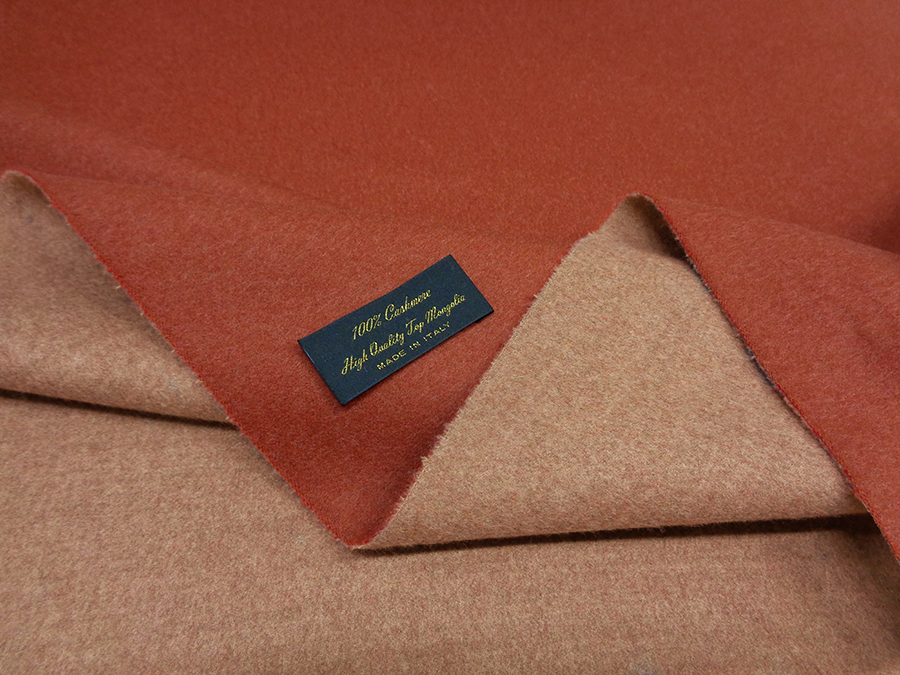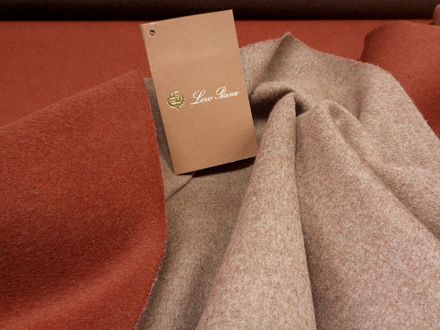 LORO PIANA STOCK (NO FIRMATO, NO CORREDATO DA ETICHETTE) PREGIATISSIMO TESSUTO IN PURO CASHMERE TOP MONGOLIA DOUBLEFACE APRIBILE, MORBIDO, CALDO, SOFFICE, SETOSO E LUMINOSO. COLORE COCCIO DA UN LATO E TORTORA MELANGE E COCCIO DALL’ALTRO LATO. POSSIBILITA’ DI UTILIZZO DA AMBO I LATI. L’ALTISSIMA QUALITA’ DEL FILATO IN PURO CASHMERE TOP MONGOLIA CONFERISCE UNA SENSAZIONE DI MORBIDEZZA E CALORE IMPAREGGIABILE. TESSUTO UNISEX AD ESAURIMENTO SCORTE. INDICATO PER: CAPPOTTI, GIACCONI, REVERSIBILI CON PELLICCIA, MANTELLE, COPERTE, ECC..