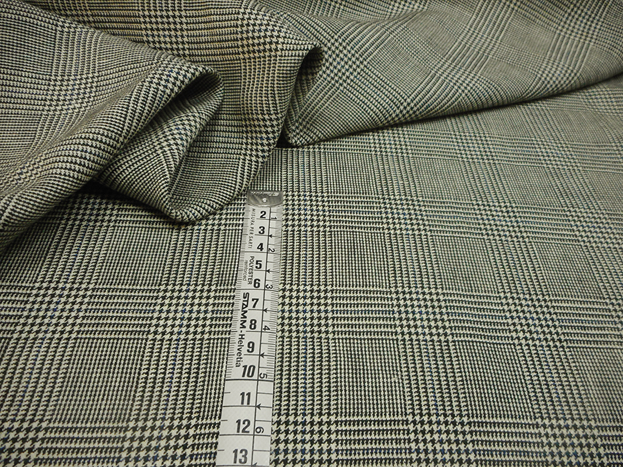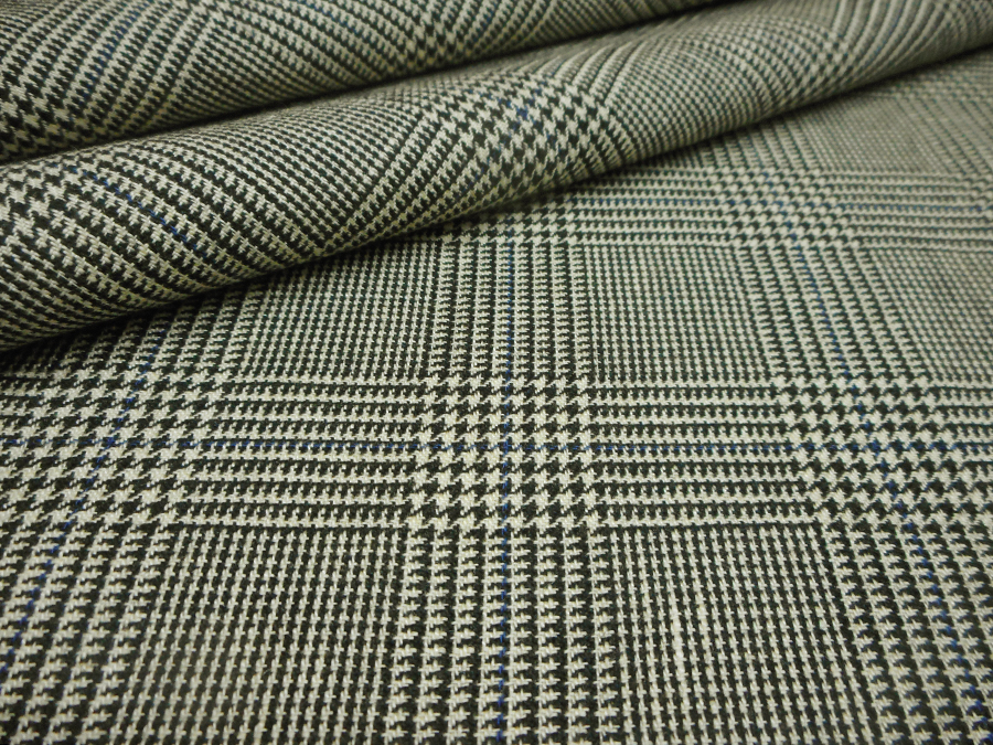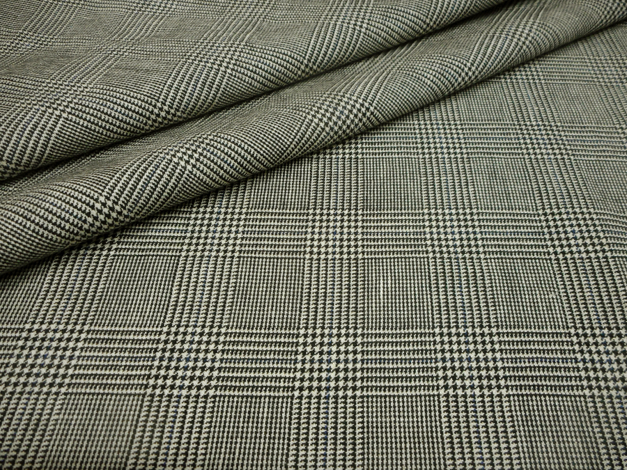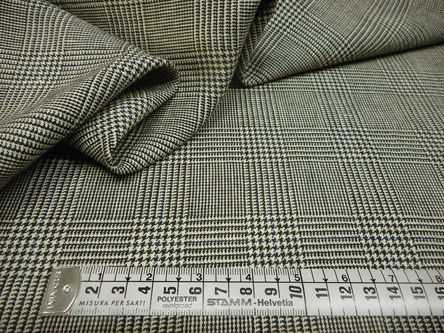 BRIONI STOCK (NO FIRMATO, NO CORREDATO DA ETICHETTE) PREGIATO ED ESCLUSIVO LINO, MORBIDO E CONSISTENTE, FONDO SABBIA CON CLASSICO PRINCIPE DI GALLES NERO. INDICATA PER: GIACCHE, PANTALONI, ABITI, BERMUDA, ECC..