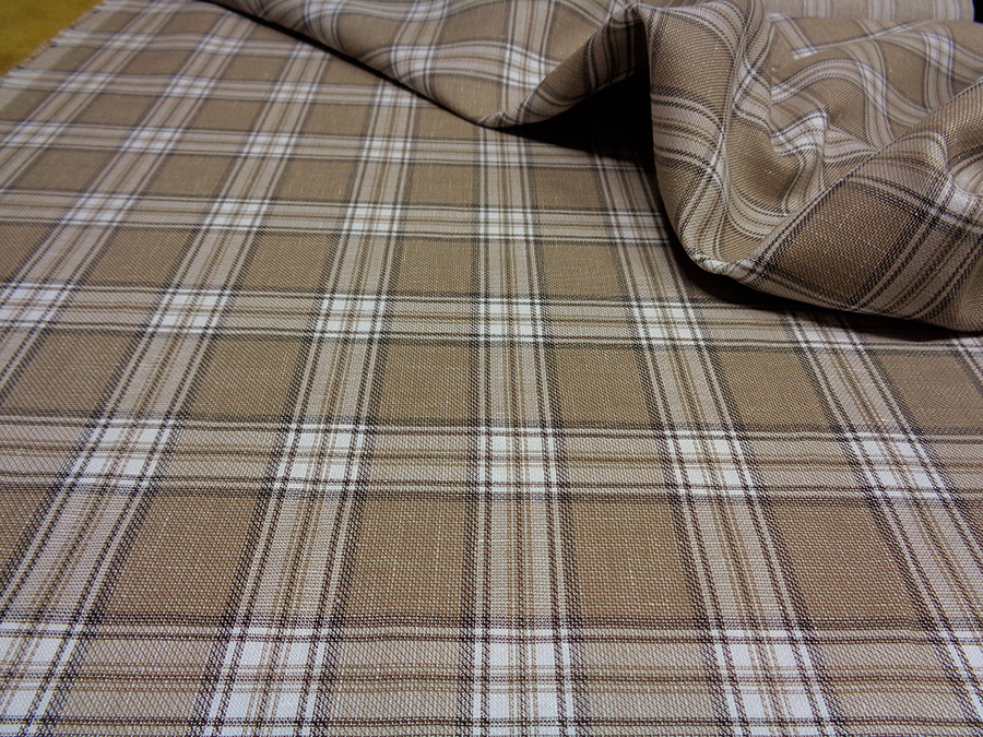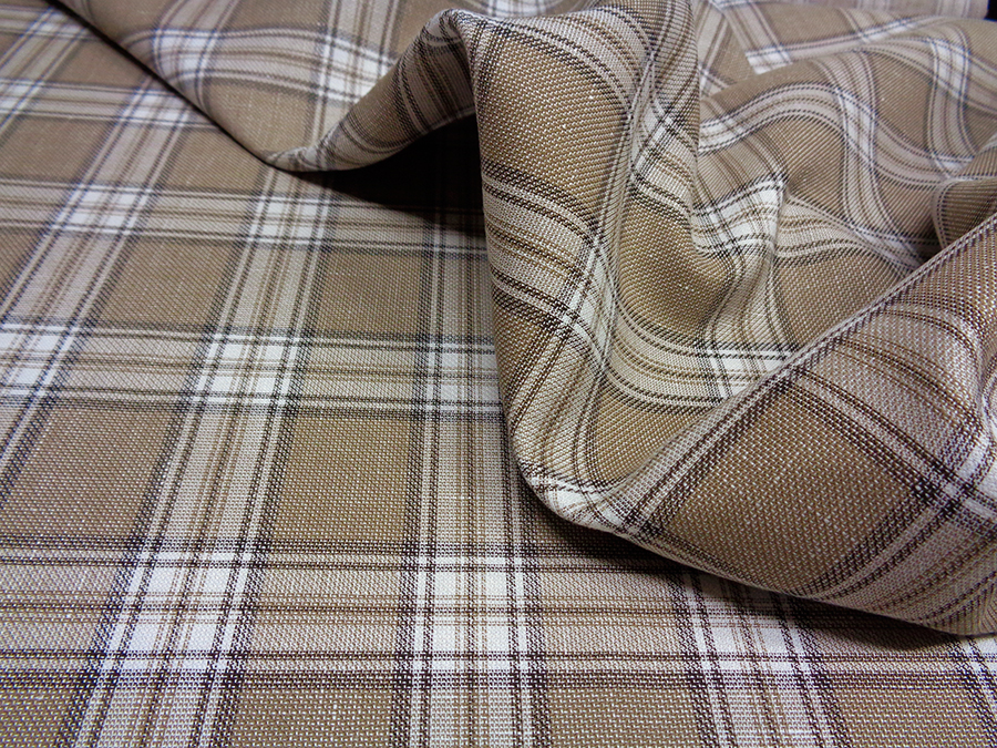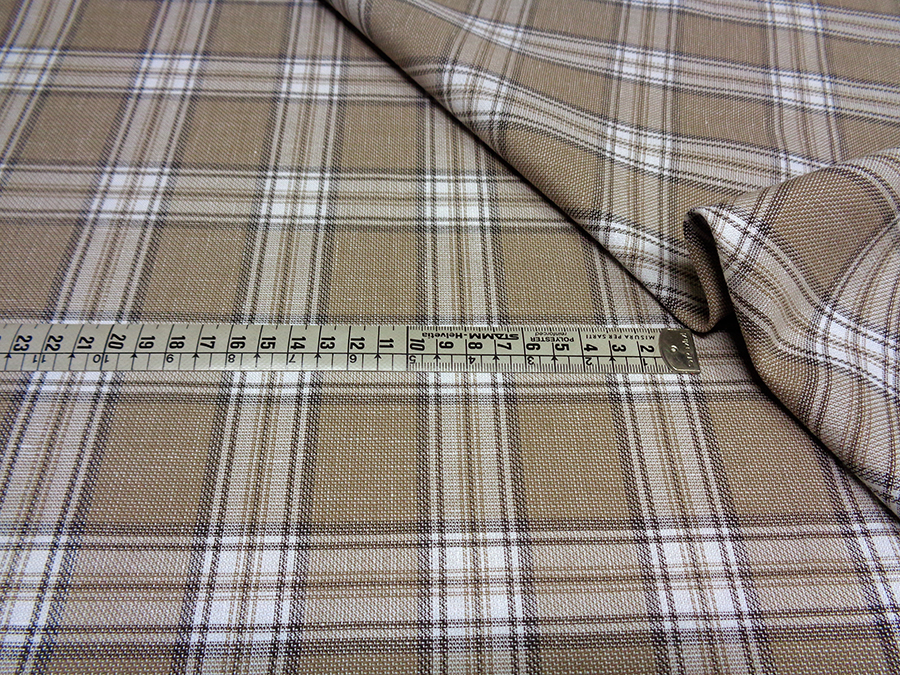 TALLIA DELFINO STOCK (NO SIGNED, NO LABEL) PRECIOUS FABRIC IN PURE LINEN SLIGHTLY WOVEN, FRESH, SOFT AND LIGHT. TAUPE BACKGROUND WITH PRINCE OF WALES ON SAND, GRAY AND IVORY TONES. UNISEX FABRIC SUITABLE FOR: JACKETS, TROUSERS, DRESSES, BERMUDAS, SKIRTS, ETC ..