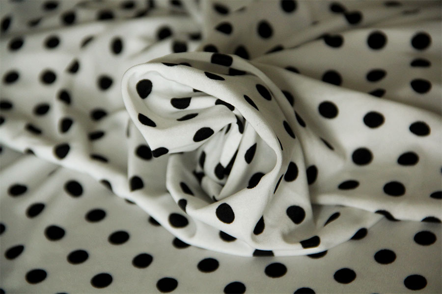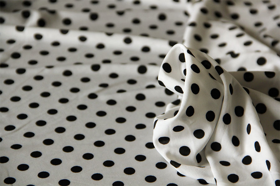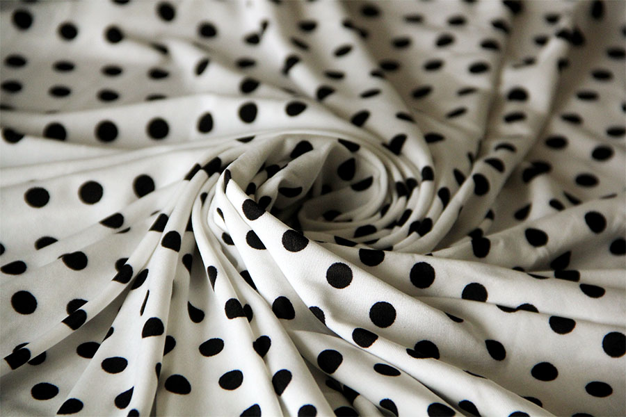 MORBIDISSIMO, SETOSO E LUMINOSO RASO SATIN FONDO BIANCO CON POIS NERO MISURA SIGARETTA. INDICATO PER: ABITI, CASACCHE, CAFTANI, PANTALONI, PIGIAMA PALAZZO, ECC..