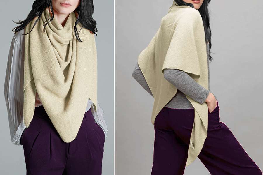 PREGIATO E VERSATILE SCIALLE A TRIANGOLO IN MAGLIA DI PURO CASHMERE. MORBIDISSIMO SOFFICE E CALDO. NUOVO ACCESSORIO MODA UNISEX, PUO’ ESSERE INDOSSATO IN VARI MODI: COME SCIALLE, COME GRANDE SCIARPA, COME CAPPUCCIO / SCIARPA O COME STOLE. PEZZI UNICI AD ESAURIMENTO SCORTE. LAVORAZIONE ARTIGIANALE BIELLESE