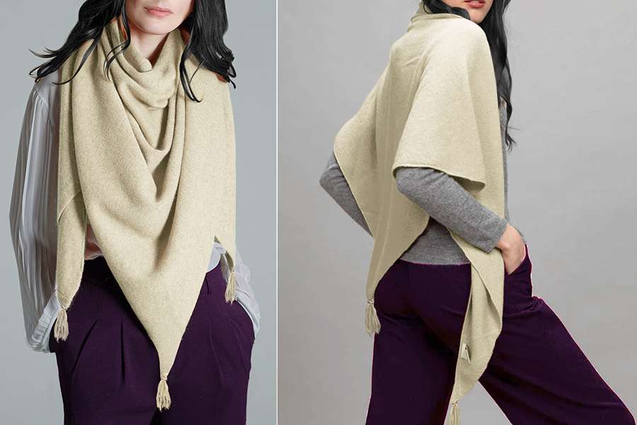 PREGIATO E VERSATILE SCIALLE A TRIANGOLO IN MAGLIA DI PURO CASHMERE. MORBIDISSIMO, SOFFICE E CALDO LO SCIALLE E’ RIFINITO AI 3 LATI CON NAPPE IN FILO DI CASHMERE REALIZZATE A MANO NUOVO ACCESSORIO MODA, PUO’ ESSERE INDOSSATO IN VARI MODI: COME SCIALLE, COME GRANDE SCIARPA, COME CAPPUCCIO/SCIARPA O COME STOLE. PEZZI UNICI AD ESAURIMENTO SCORTE.