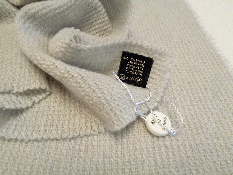 PREGIATISSIMA ED ESCLUSIVA SCIARPA IN PURO CASHMERE ULTRASOFT CON PARTICOLARE LAVORAZIONE AIRCASH* CHE RENDE LA SCIARPA INCREDIBILMENTE MORBIDA, CALDA E SOFFICE. RIFINITA CON FRANGETTE REALIZZATE A MANO. LAVORAZIONE TRAMATA A TELAIO EFFETTO CHICCO DI RISO. COLORE GESSO (TRA IL PERLA E LAVORO) CAPO UNISEX.