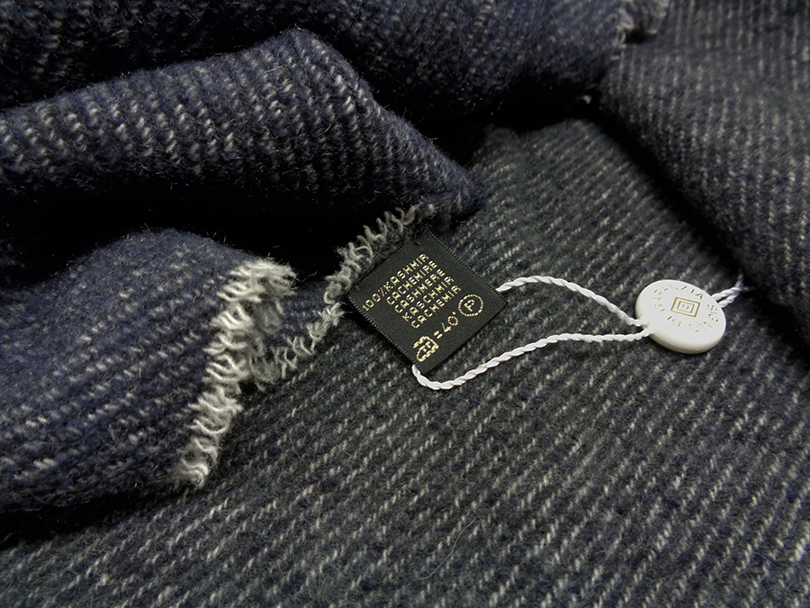 PREGIATISSIMA ED ESCLUSIVA SCIARPA IN PURO CASHMERE ULTRASOFT CON PARTICOLARE LAVORAZIONE AIRCASH* CHE RENDE LA SCIARPA INCREDIBILMENTE MORBIDA, CALDA E SOFFICE. RIFINITA CON FRANGETTE REALIZZATE A MANO. COLORE DOUBLEFACE: DA UN LATO DIAGONALE GRIGIO ANTRACITE MELANGE, E DALL’ALTRO LATO DIAGONALE BLU MELANGE. POSSIBILITA’ DI ESSERE INDOSSATA DA AMBO I LATI. CAPO UNISEX.