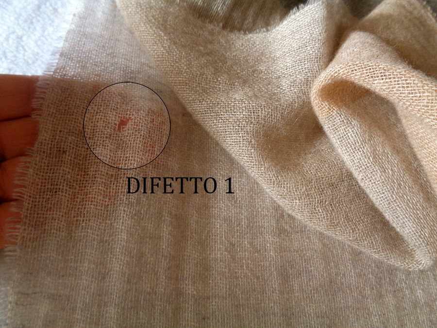 *DIFETTO 1: PICCOLISSIMO ED IMPERCETTIBILE BUCHINO IN TRAMA SULLA CIMOSA LATELARE NELLA META’ DELLA SCIARPA. POSSIBILE REALIZZARE RAMMENDO O LASCIARE L’INVISIBILE IMPERFEZIONE (VEDI FOTO). IDEALE PER USO PERSONALE.