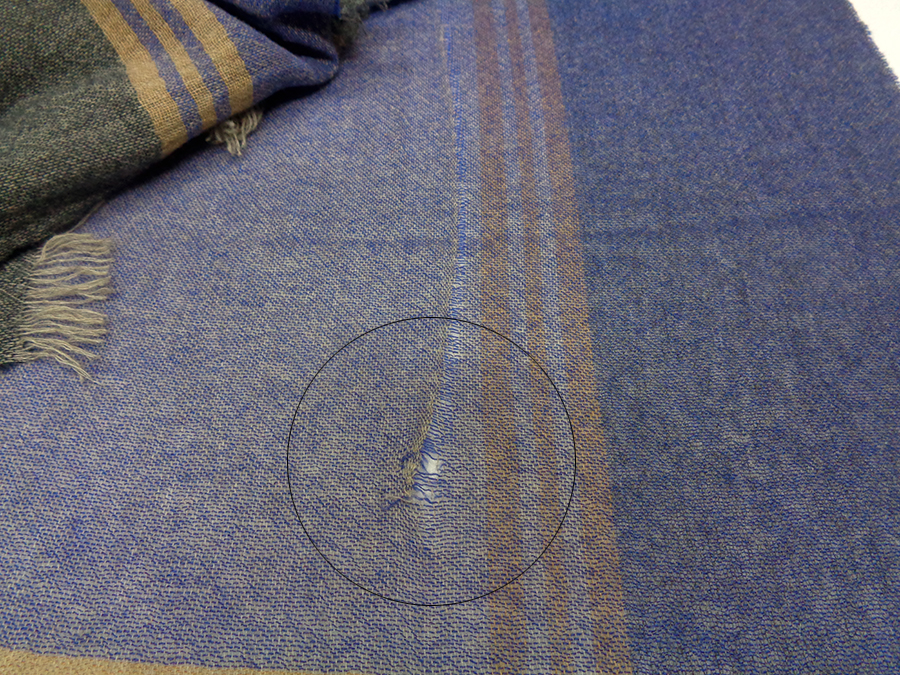 *DIFETTO: RIGA IN TRAMA PER TUTTA LA LUNGHEZZA DELLA SCIARPA E PICCOLO BUCO DA UN LATO A 30 CM DALLA FRANGIA.
