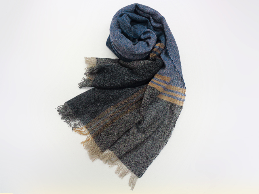 PREGIATISSIMA ED ESCLUSIVA SCIARPA / STOLA IN PURO CASHMERE ULTRASOFT CON PARTICOLARE LAVORAZIONE’ AIRCASH* CHE RENDE LA SCIARPA INCREDIBILMENTE SOFFICE, MORBIDISSIMA, CALDA E LEGGERA. FONDO JEANS MLANGE CON DISEGNO SCOZZESE / RIGATO SUI TONI DEL GRIGIO E CAMMELLO MELANGE. RIFINITA CON FRANGETTE REALIZZATE A MANO. CAPO UNISEX. LA MISURA LA RENDE PARTICOLARMENTE ADATTA PER ESSERE UTILIZZATA COME CALDA ED AVVOLGENTE SCIARPA O LEGGERA, SOFFICE E CALDA STOLA. LA REALIZZAZIONE ARTIGIANALE A TELAIO CON FILATI IN CASHMERE DI TOP MONGOLIA LAVORATI A GARZA E PRIVI DI TINTEGGIATURA, RENDE IL CAPO INCREDIBILMENTE SOFFICE E MORBIDO; DONANDO SENSAZIONI UNICHE AL CONTATTO CON LA PELLE: LEGGEREZZA E CALORE INCOMPARABILI.