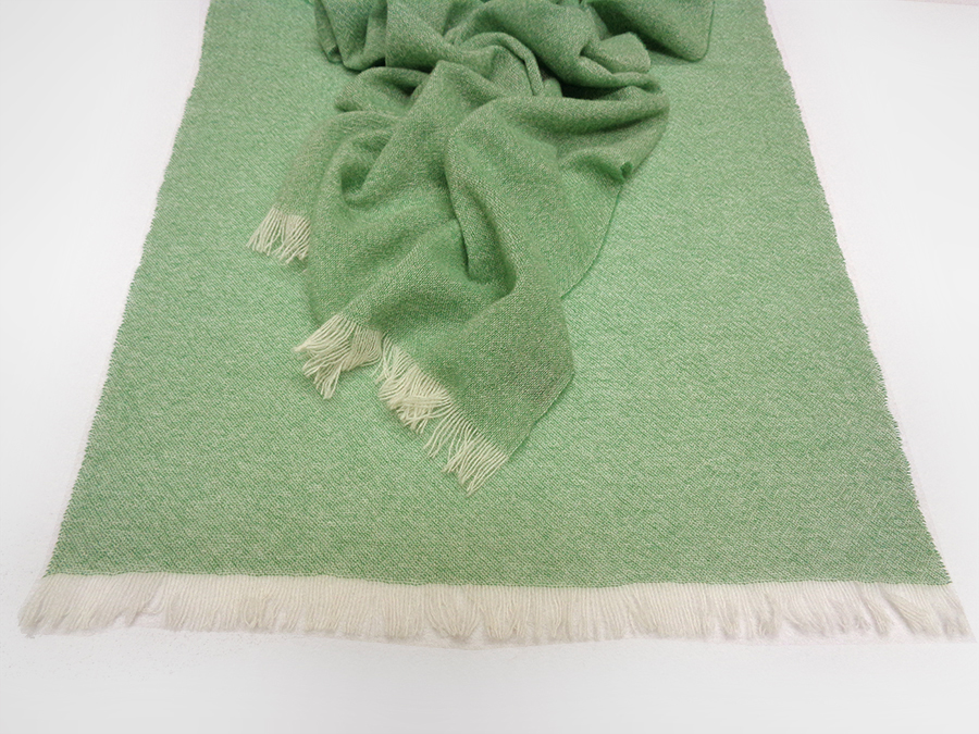 PREGIATISSIMA ED ESCLUSIVA SCIARPA / STOLA IN PURO CASHMERE ULTRASOFT CON PARTICOLARE LAVORAZIONE’ AIRCASH* CHE RENDE LA SCIARPA INCREDIBILMENTE SOFFICE, MORBIDISSIMA, CALDA E LEGGERA. REALIZZATA CON FILATO IN COLORE VERDE MENTA E NATURALE A CREARE UN EFFETTO MELANGE. RIFINITA CON FRANGETTE COLORE NATURALE REALIZZATE A MANO. CAPO UNISEX. LA MISURA LA RENDE PARTICOLARMENTE ADATTA PER ESSERE UTILIZZATA COME CALDA ED AVVOLGENTE SCIARPA O LEGGERA, SOFFICE E CALDA STOLA. LA REALIZZAZIONE ARTIGIANALE A TELAIO CON FILATI IN CASHMERE DI TOP MONGOLIA LAVORATI A GARZA, RENDE IL CAPO INCREDIBILMENTE SOFFICE E MORBIDO; DONANDO SENSAZIONI UNICHE AL CONTATTO CON LA PELLE: LEGGEREZZA E CALORE INCOMPARABILI.