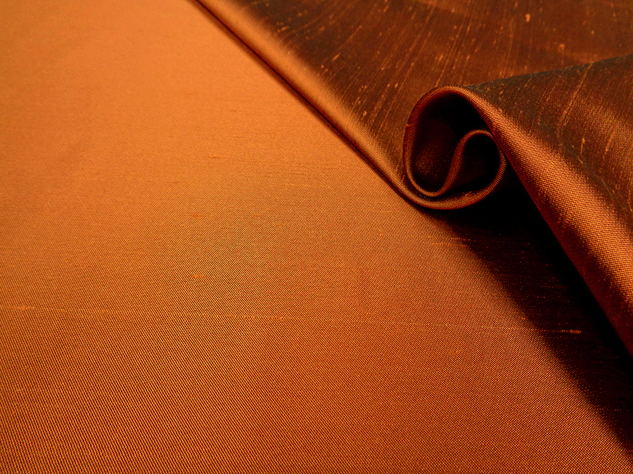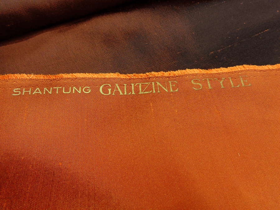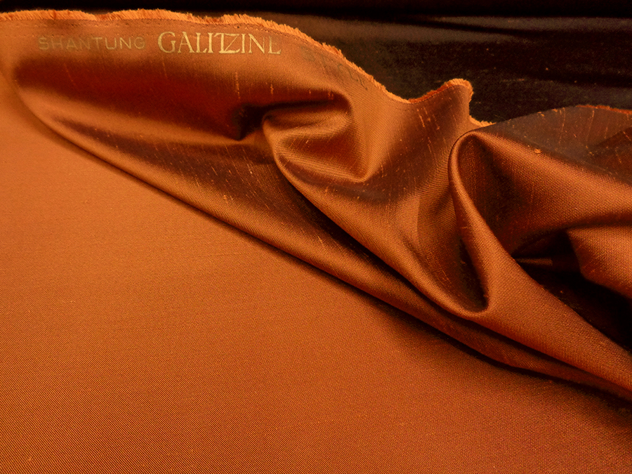 FIRMATO “SHANTUNG GALITZINE STYLE”. CONSISTENTE E LUMINOSO SHANTUNG DALLA CARATTERISTICA TRAMA FIAMMATA IN SENSO ORIZZONTALE, EFFETTO CANGIANTE DATO DAL DOPPIO FILATO CON CATENA NERA. POSSIBILITA’ DI UTILIZZO DA AMBO I LATI. INDICATO PER: ABITI, GONNE, GIACCHE, STOLE, CORPETTI, PANTALONI, SPOSA E CERIMONIA PER UOMO E DONNA..