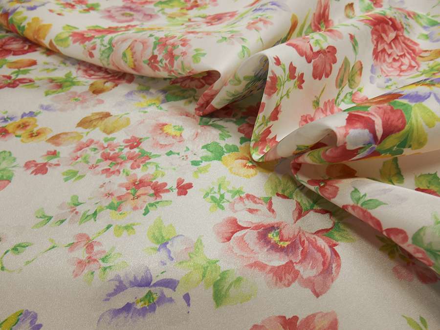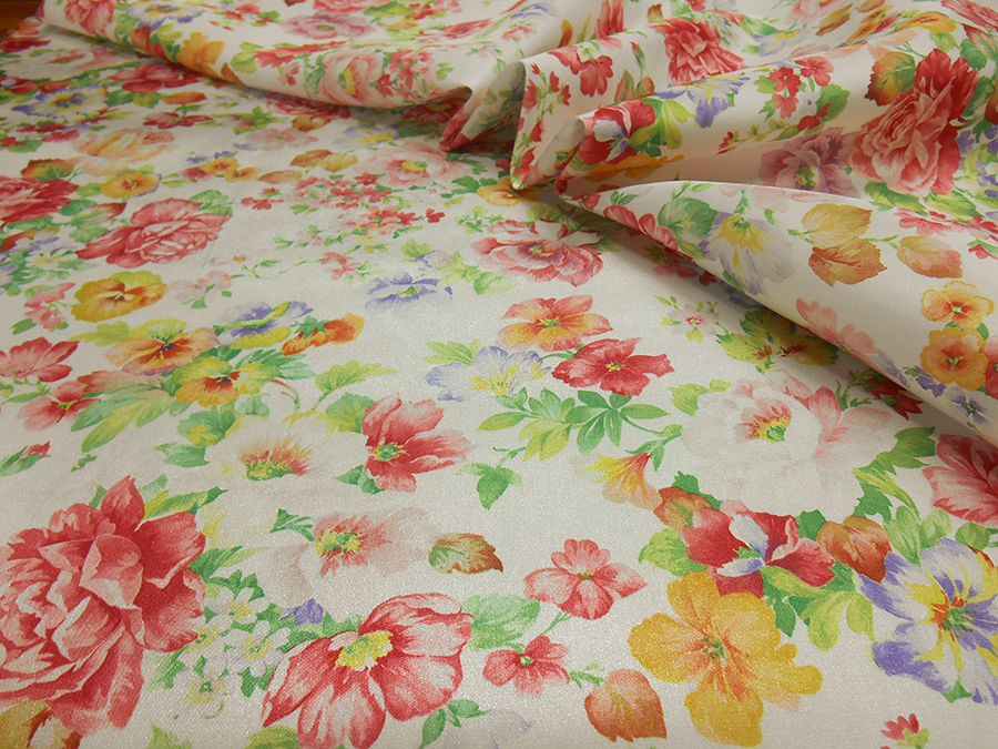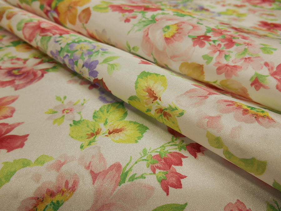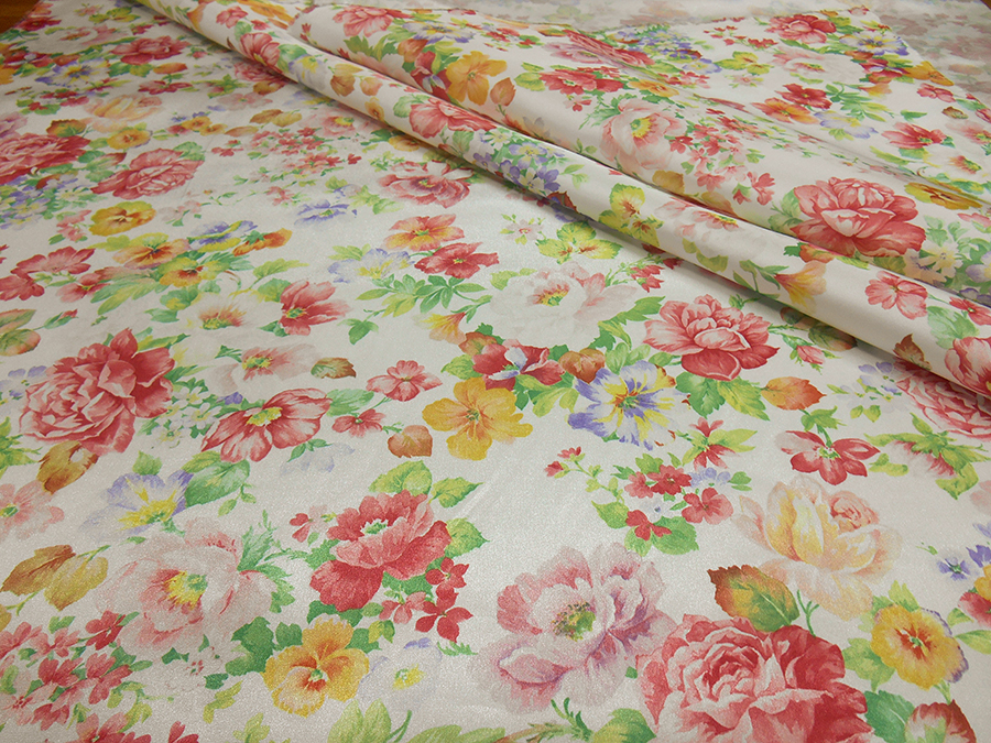 LEGGERO E RIGIDO TAFFETA’ FONDO BIANCO CON CLASSICHE ROSE INGLESI. INDICATO PER: GONNE, ABITI ECC.