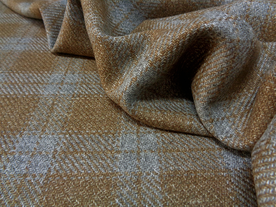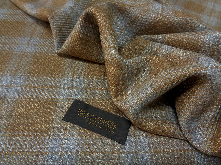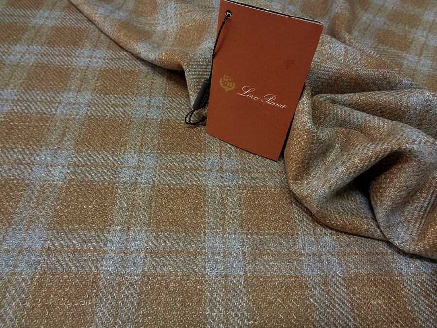 LORO PIANA STOCK (NO FIRMATO, NO CORREDATA DA ETICHETTE) PREGIATISSIMO TESSUTO IN PURO CASHMERE, PESO MEDIO, MORBIDO , SETOSO E RASATO . CON LAVOAZIONE TARTAN MELNAGE SUI TONI DEL CAMMELLO E GRIGIO POLVERE ( GRIGIO LEGGERMENTE AZZURRATO). TESSUTO UNISEX. INDICATO PER: GIACCHE, ABITI, SOPRABITI CAPPOTTI, PANTALONI ECC..